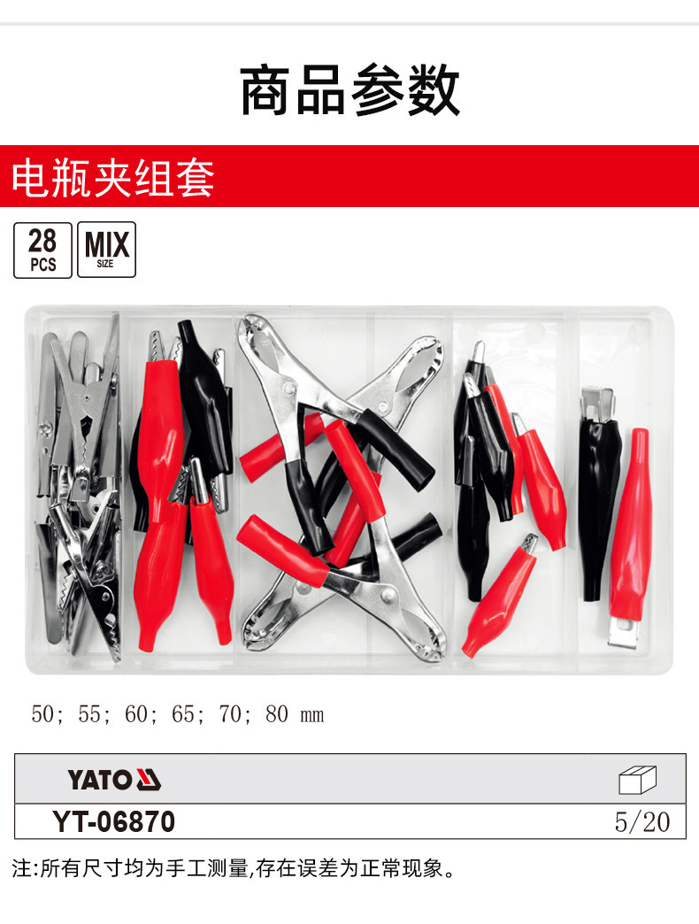 易尔拓 YATO 电瓶夹子组套汽车搭火线鳄鱼夹蓄电池电线连接线卡子