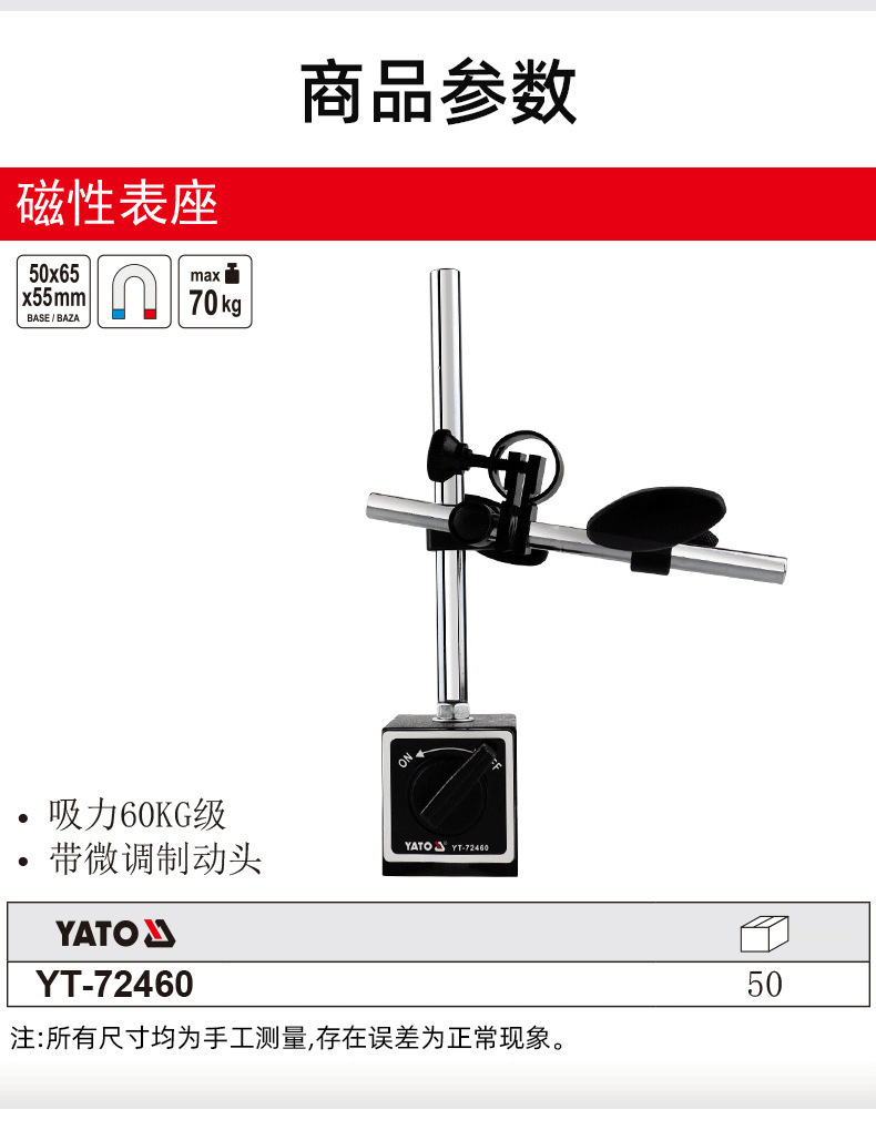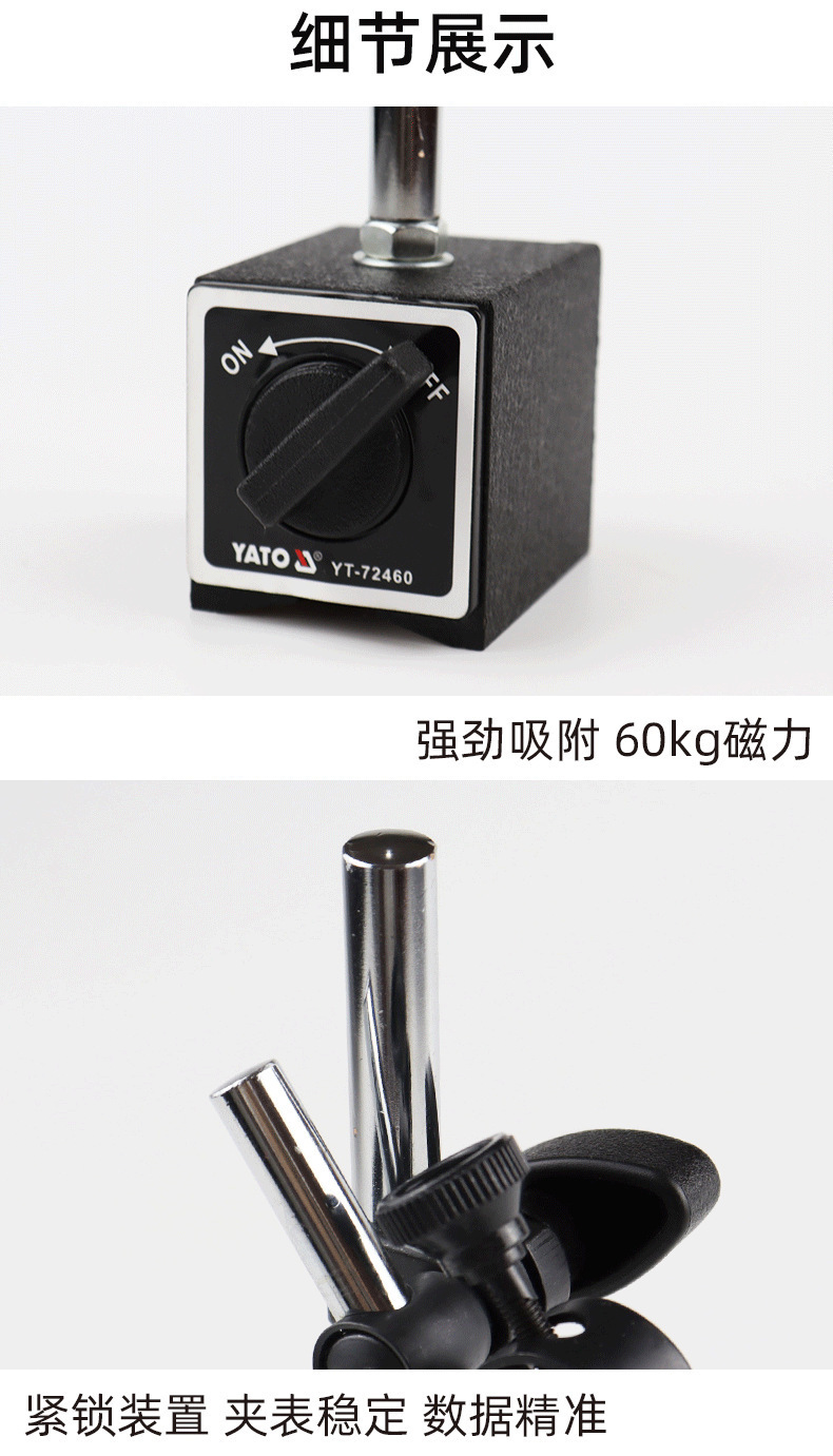 易尔拓 (YATO )百分表磁力磁性表座吸表架座双杆