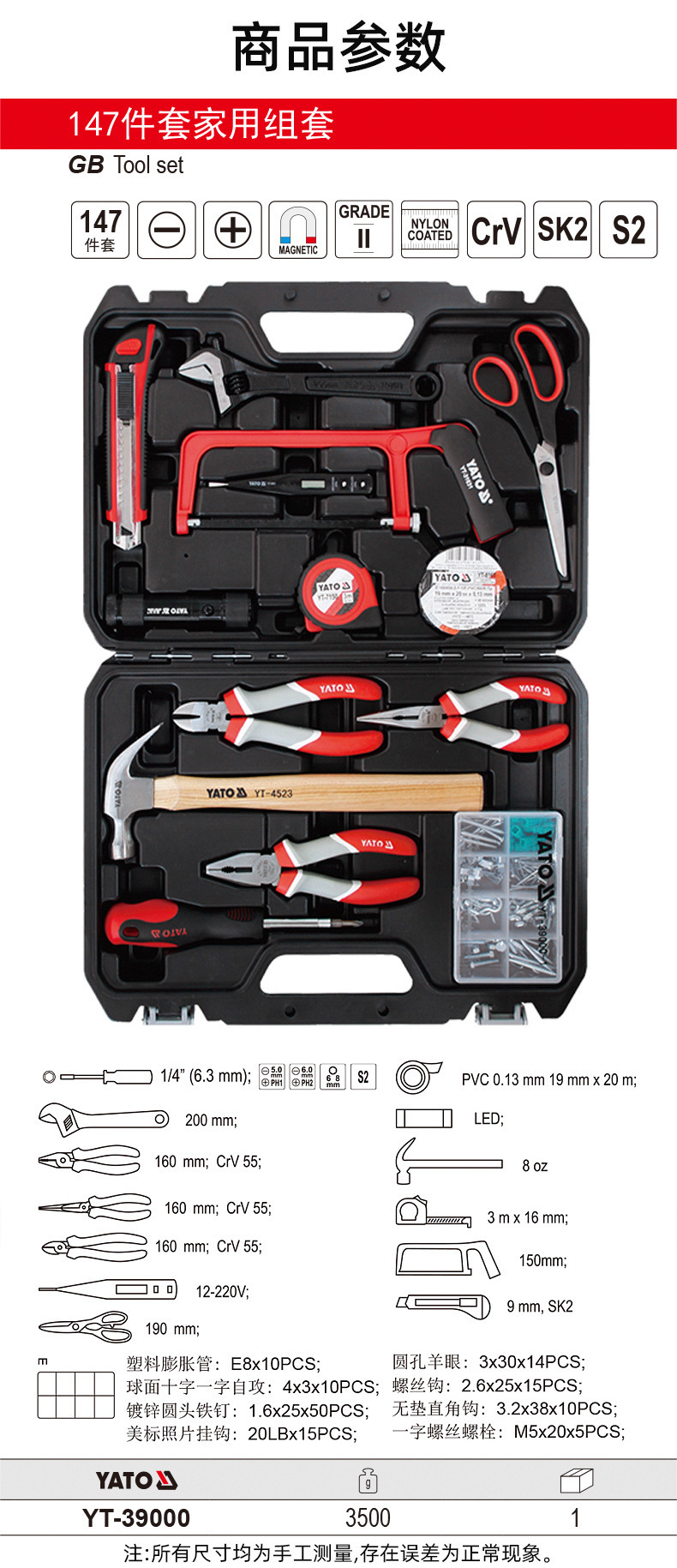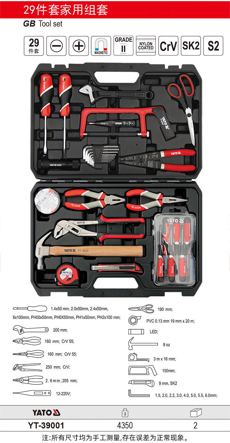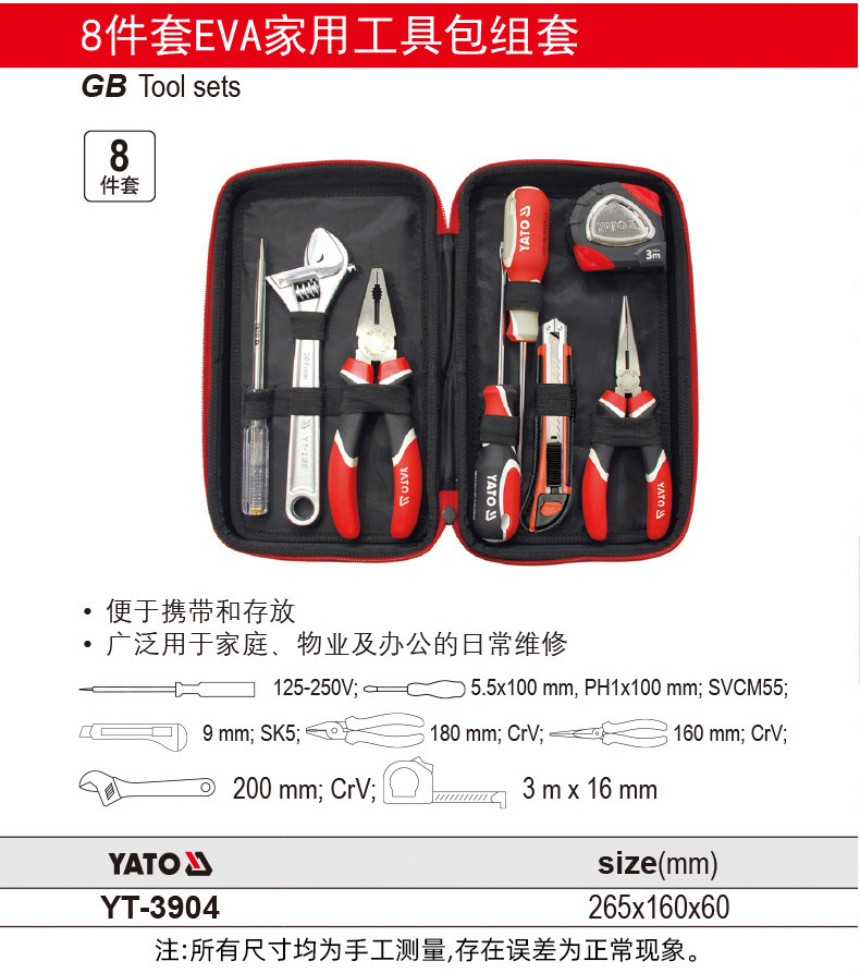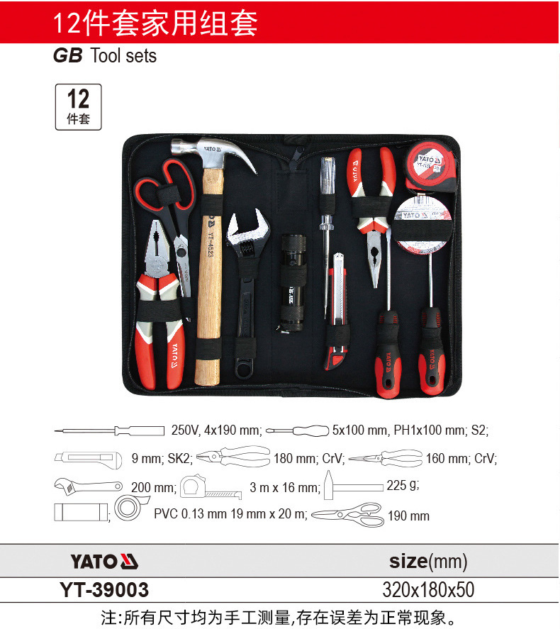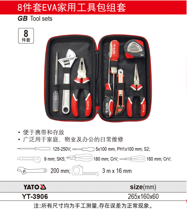 易尔拓(YATO)家用工具包组合套装多功能日常维修工具组套