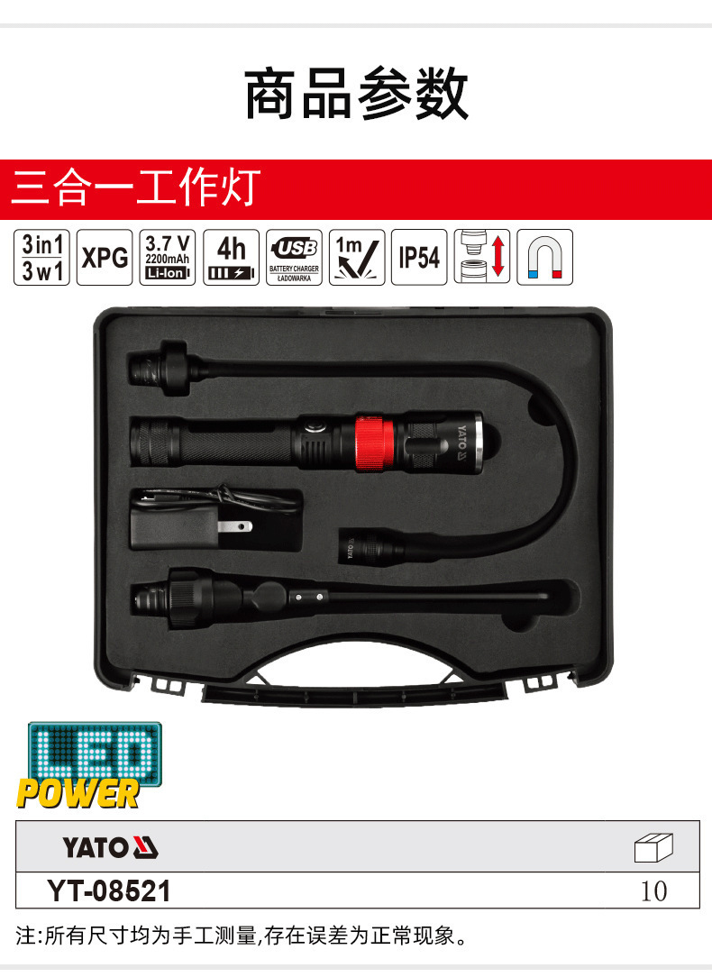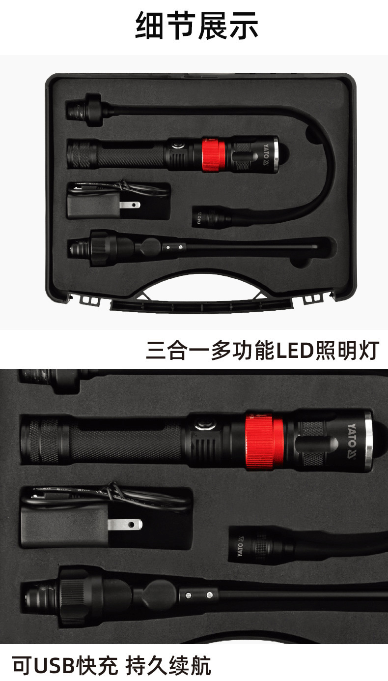 易尔拓 YATO 三合一工作灯防泼水带磁可充电应急检修灯