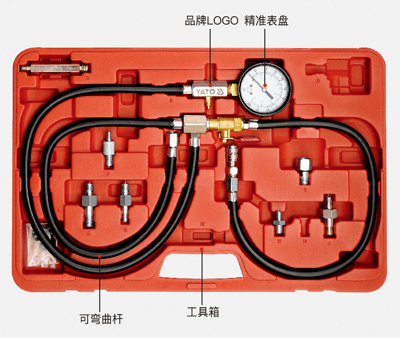 易尔拓汽车燃油压力检测工具汽油压力表汽修检测仪测试喷射油压表
