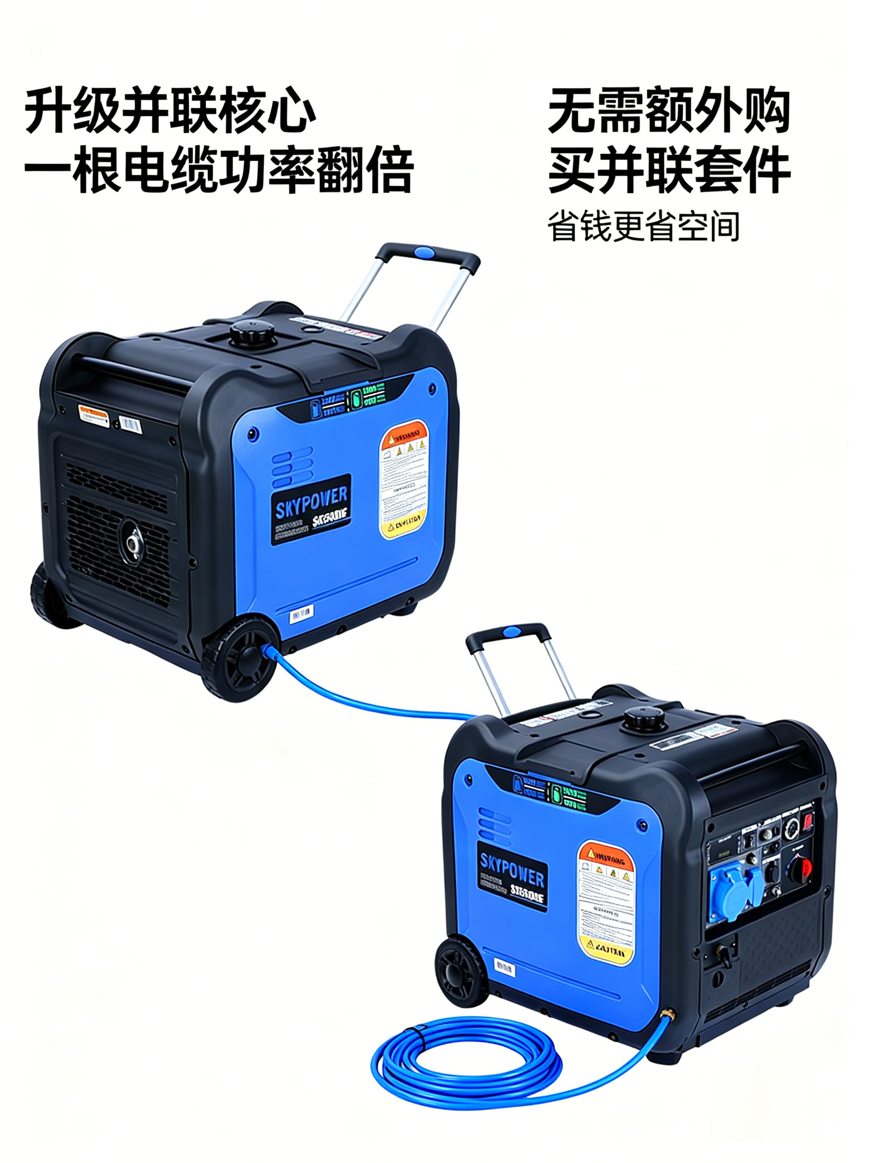 SKYPOWER SK5500iE静音变频发电机、双燃料发电机、汽油、燃气发电机