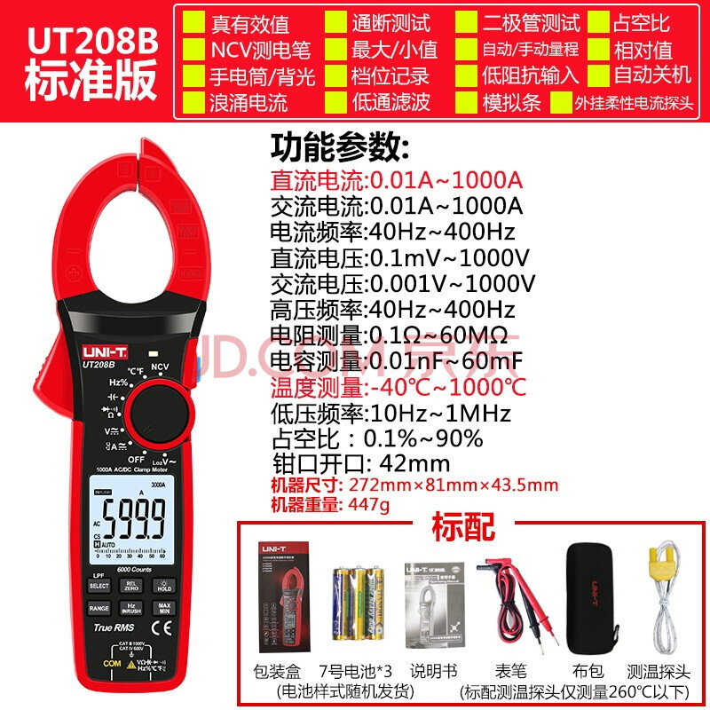 UNI-T优利德 1000A真有效值数字钳形表 UT208B 32cm*15cm*7cm
