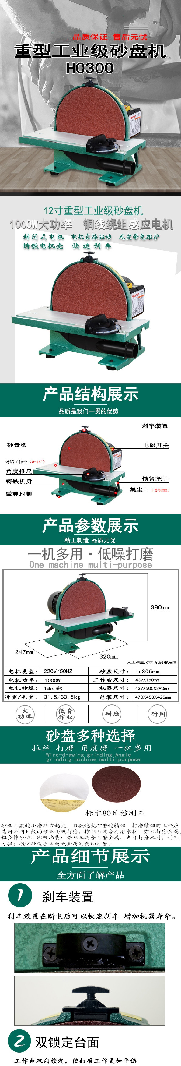 1000W12寸纯铜线砂盘机HDS300抛光机 砂光机