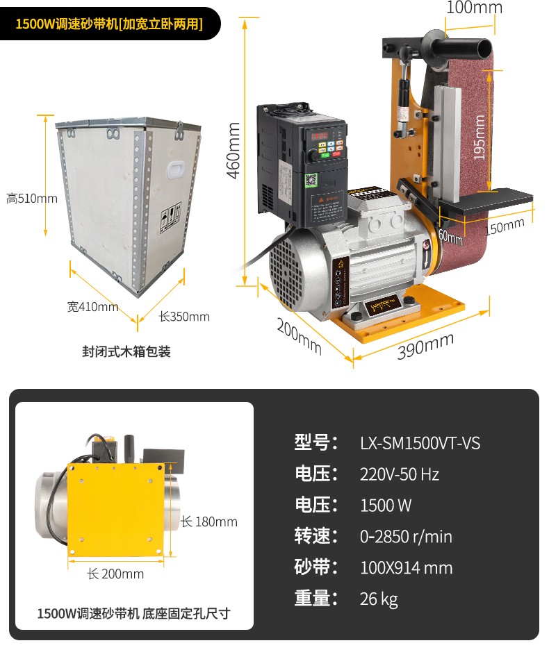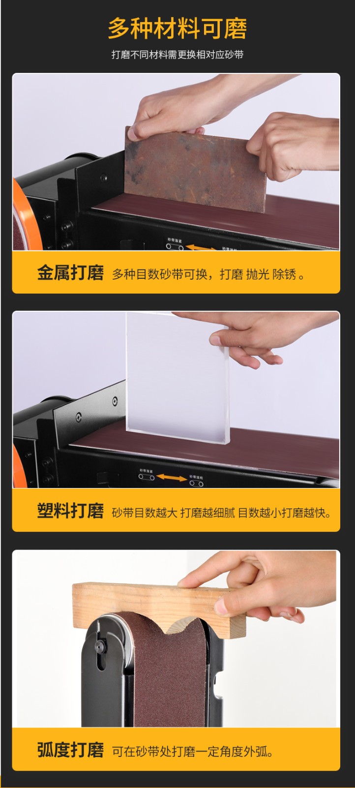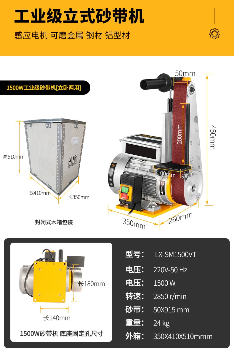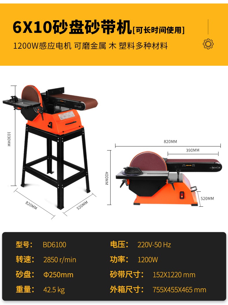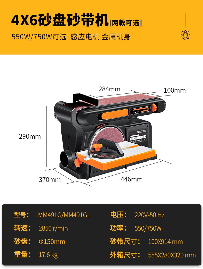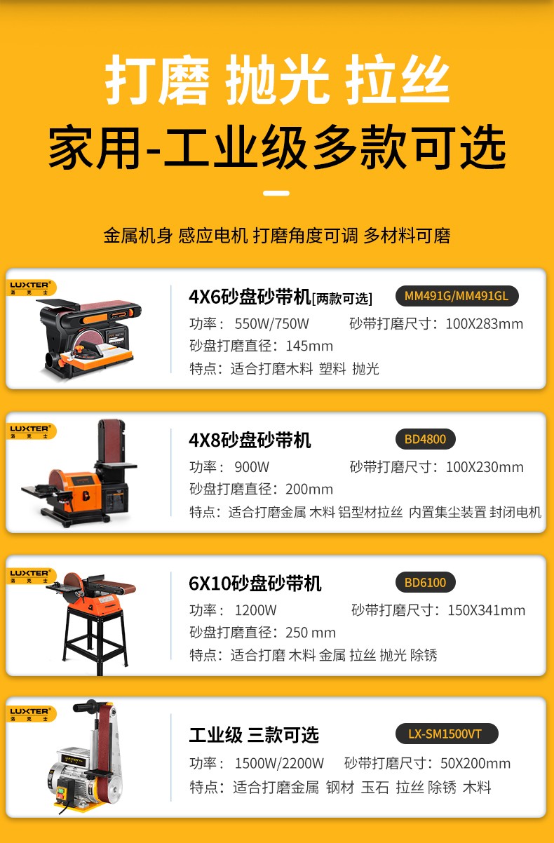 砂带机小型打磨机工业级砂盘抛光机电动台式砂光机磨刀金属拉丝机 4X6高配+吸尘器