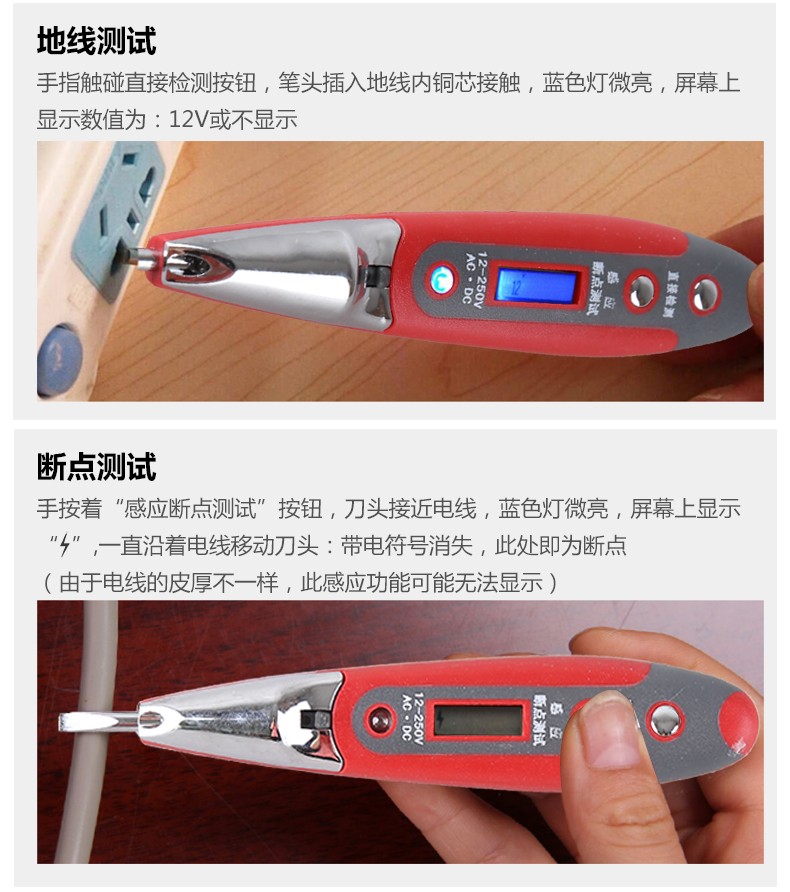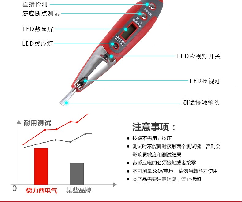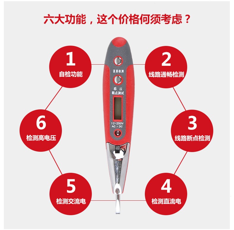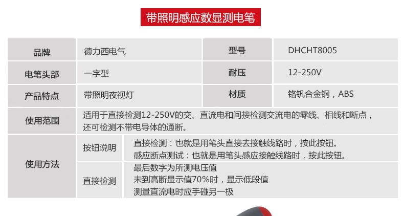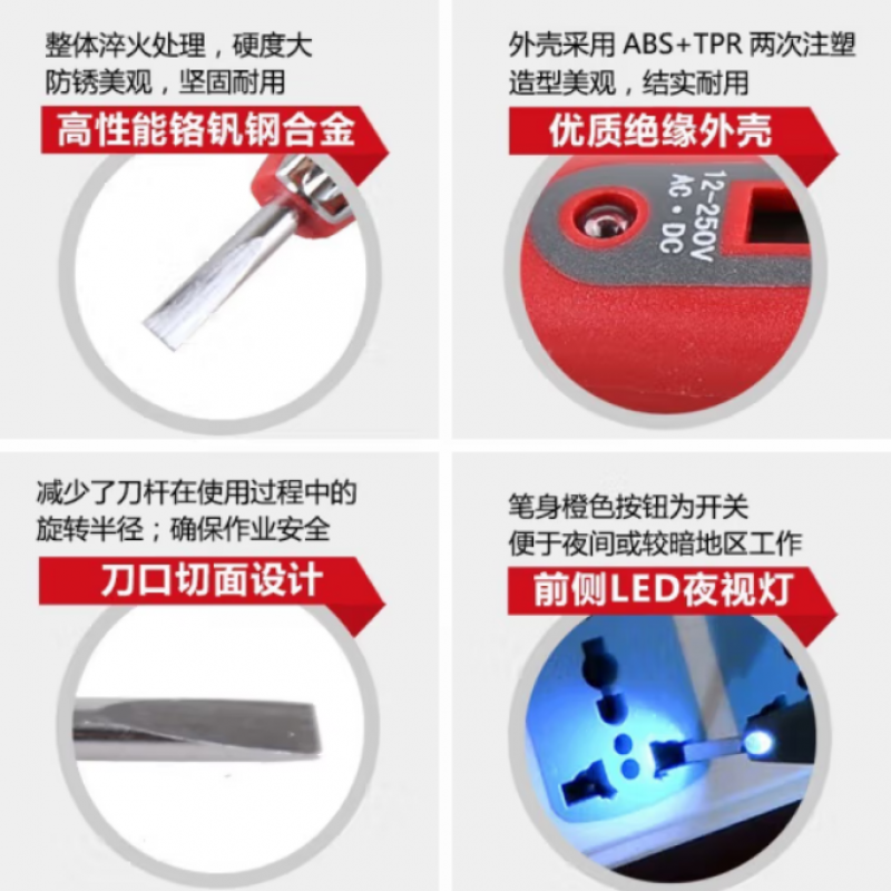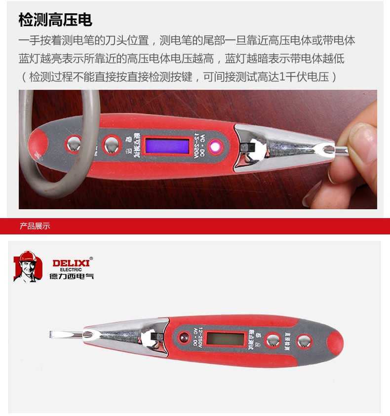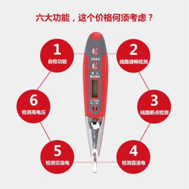 德力西(DELIXI)测电笔 带照明数显测电笔多功能感应电工测电笔试电笔验电笔螺丝刀 12-250V