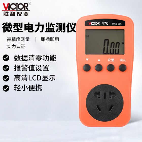 胜利仪器(VICTOR)VC470 微型电力监测仪 功率计 量插座空调功耗测量仪 插座测试仪