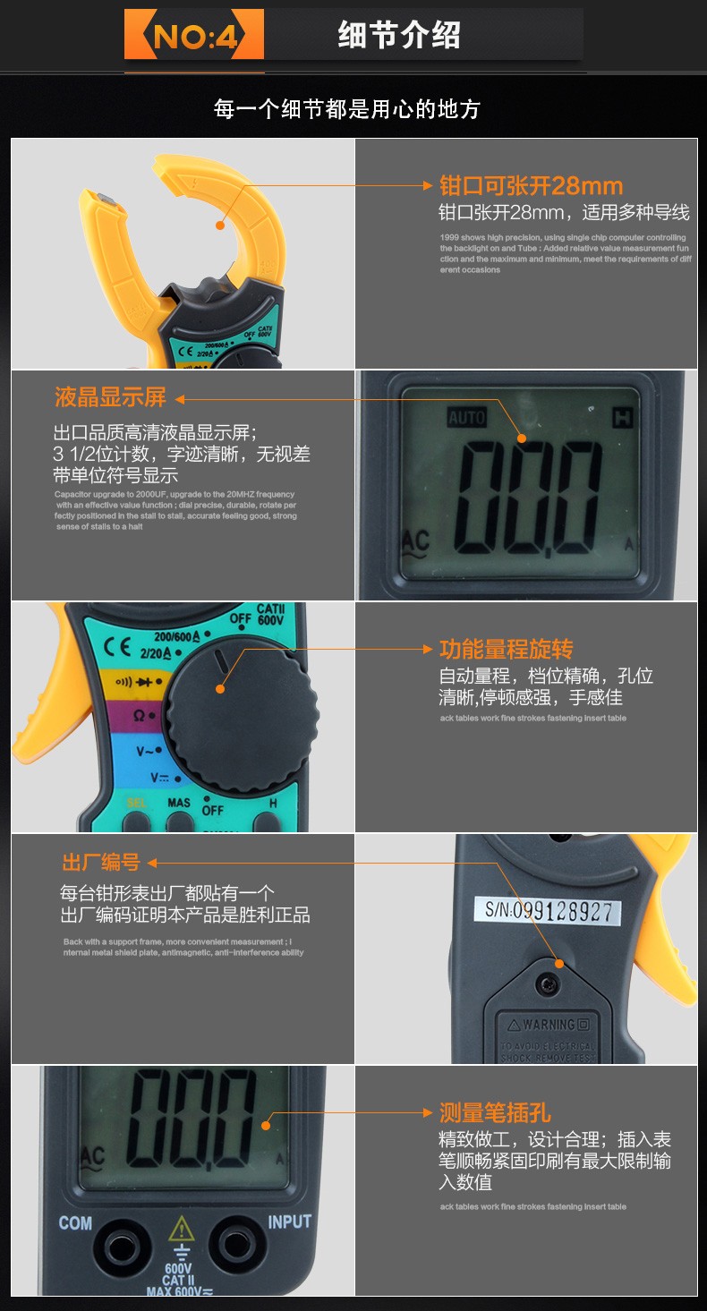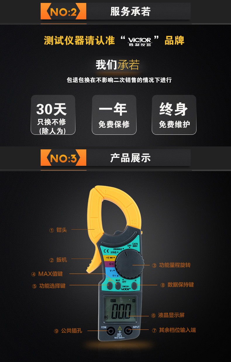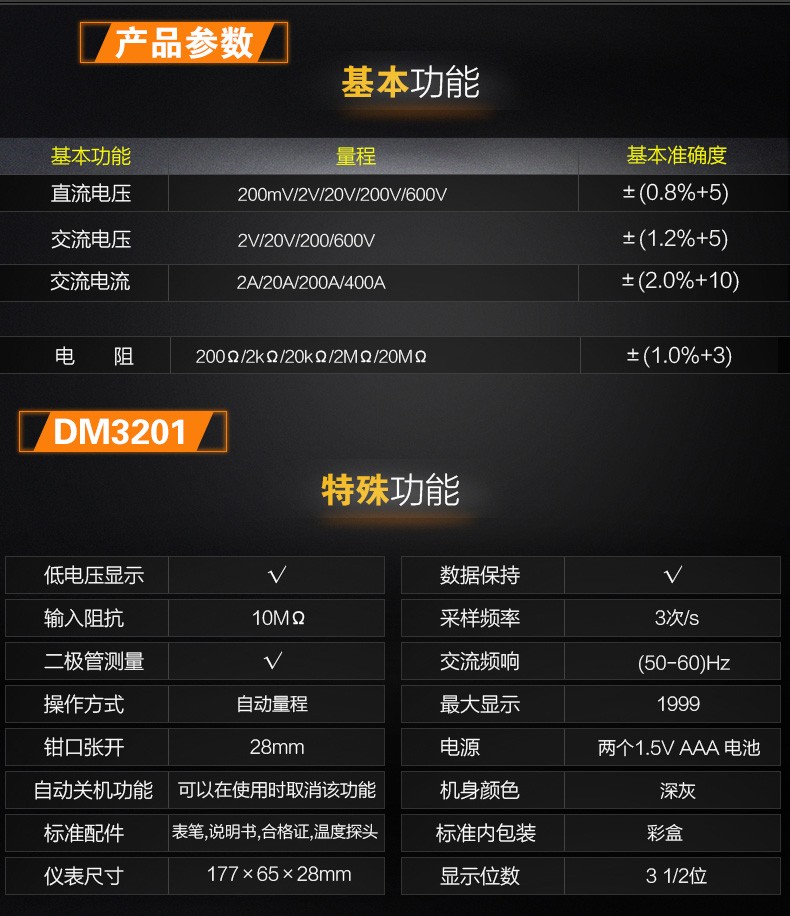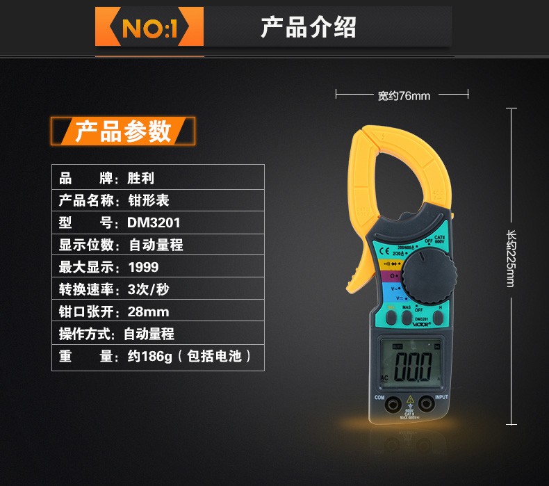 胜利仪器(VICTOR) DM3201交流电流表钳形 400A 官方标配