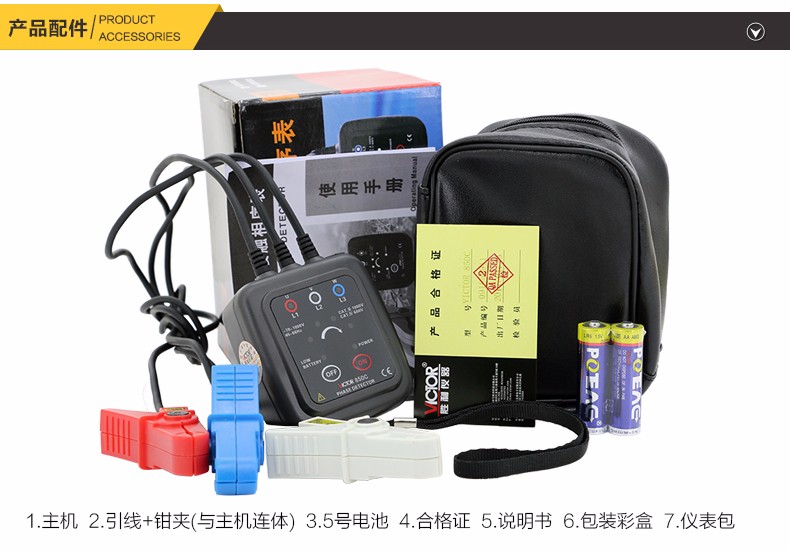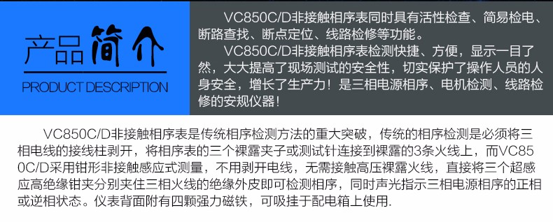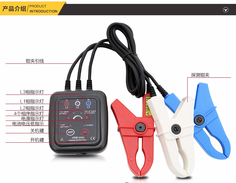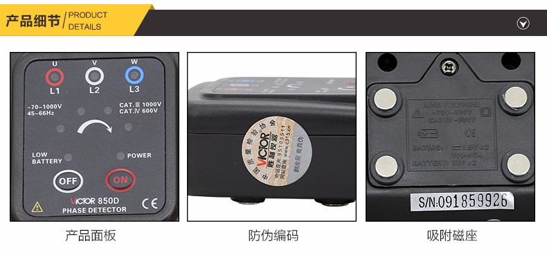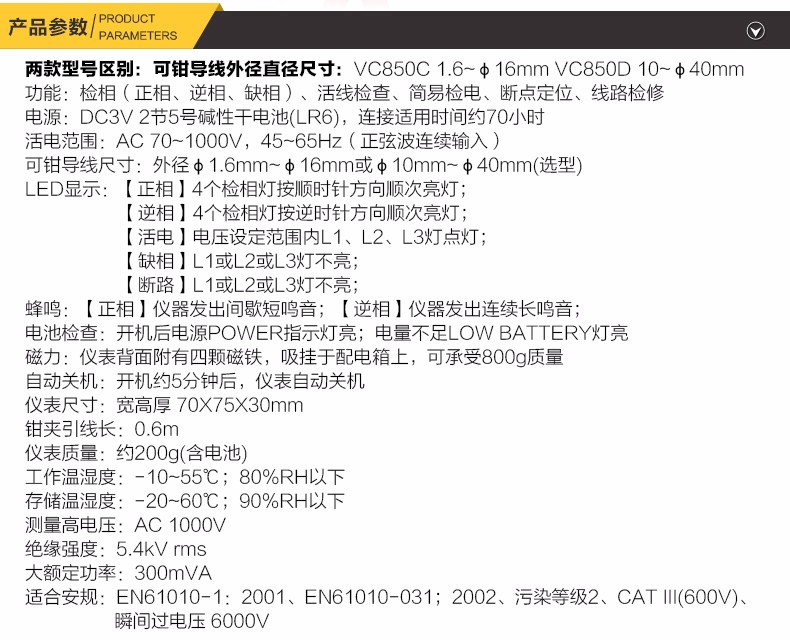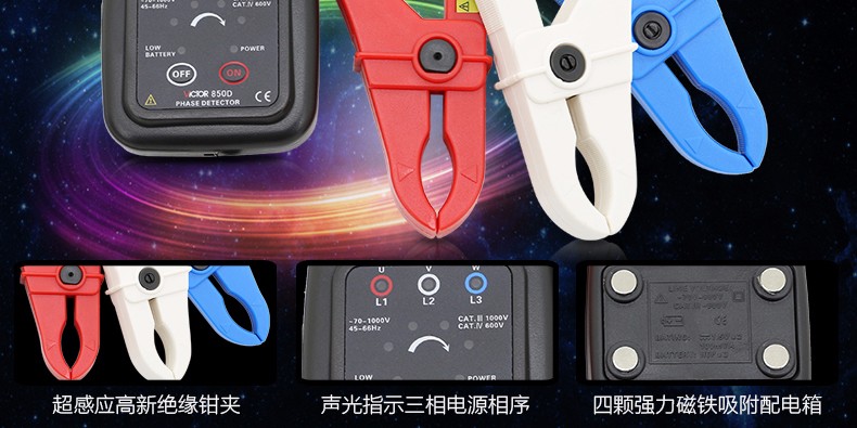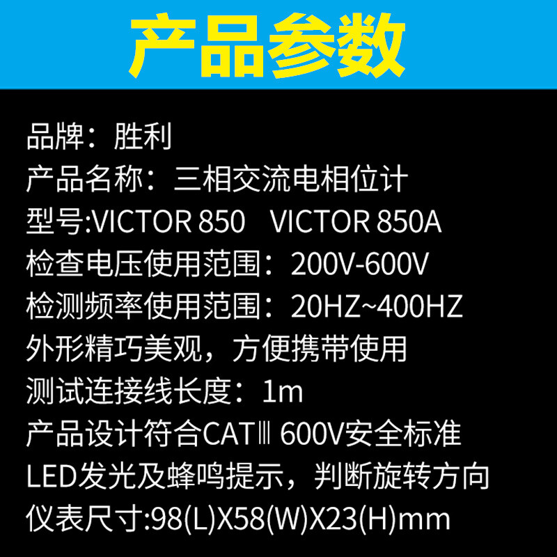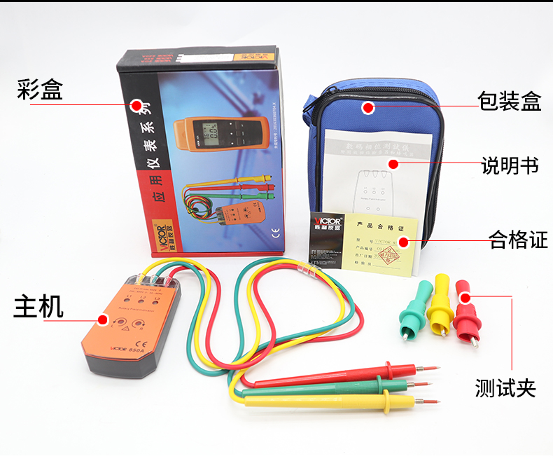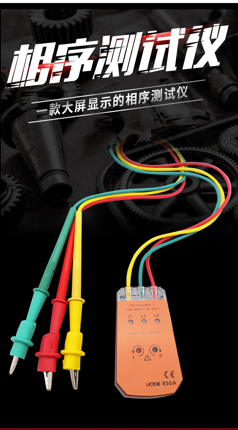 胜利 VICTOR 850三相交流电相序计 相序表 相位检测仪VC850A/C/D相位表 相序测试仪 VC850范围200V-480V