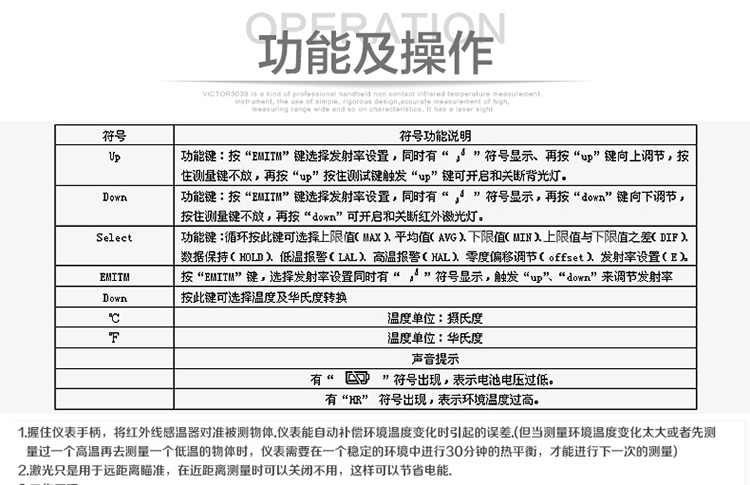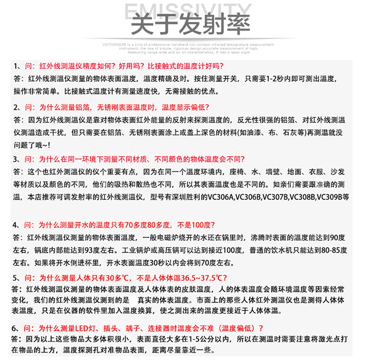 胜利仪器(VICTOR) VC303B 红外测温仪电子温度计测温枪