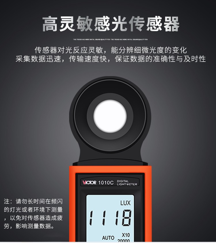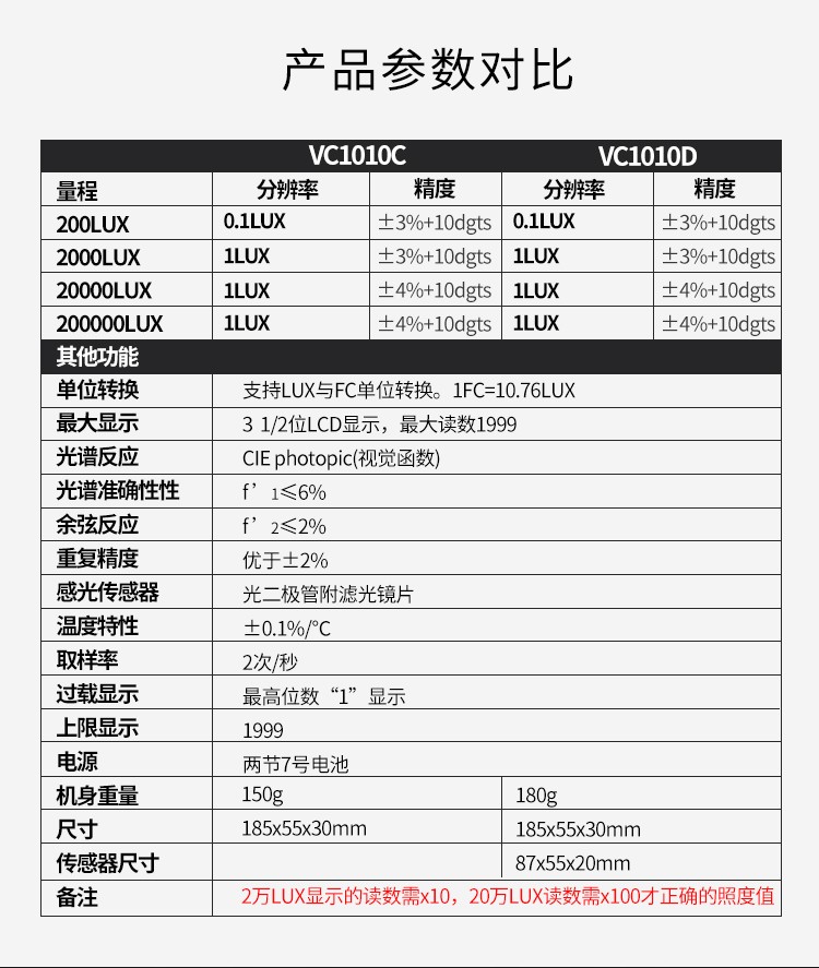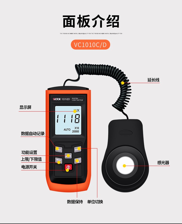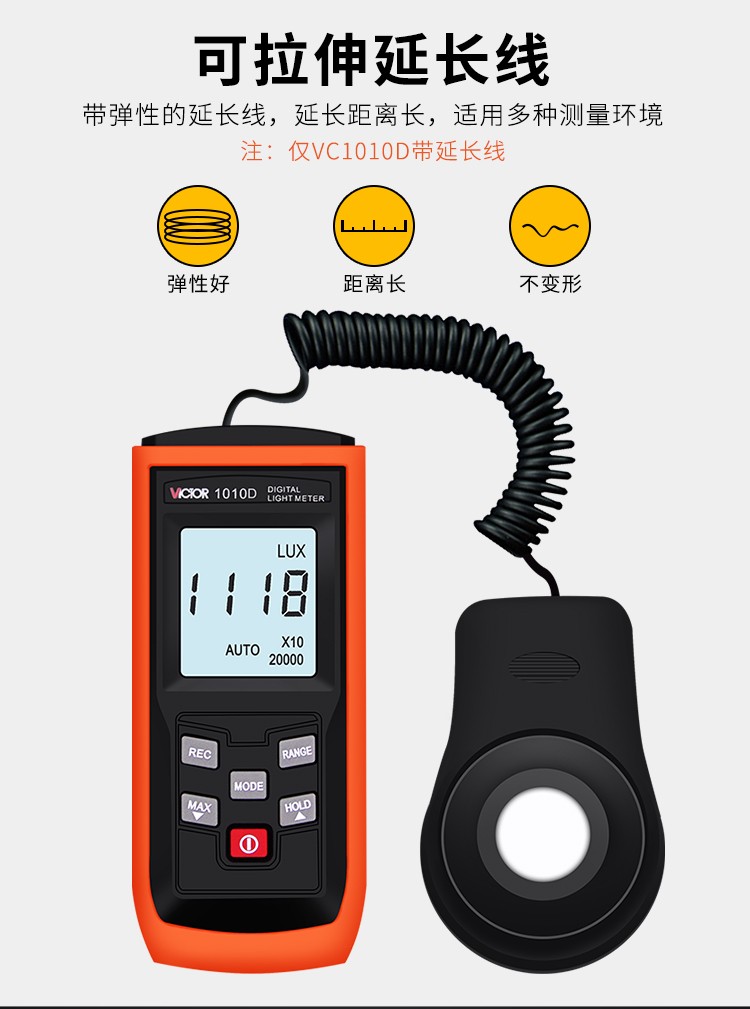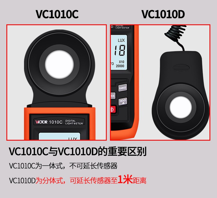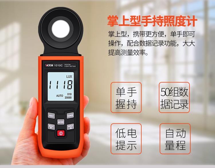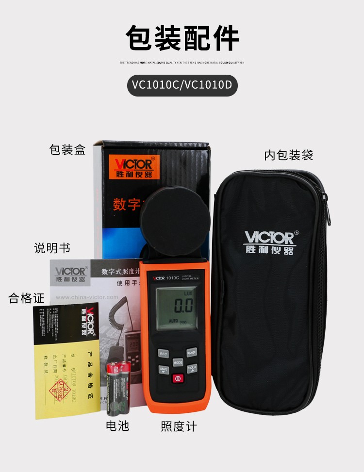 胜利仪器(VICTOR)VC1010C/D 照度计测光表 照度仪亮度表 200000Lux照度 VC1010D 标配+充电套装