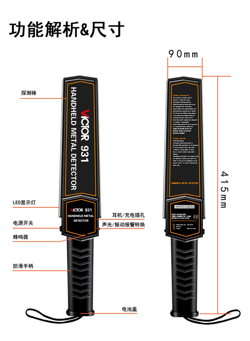 胜利仪器(VICTOR)手持金属探测器VC931/932车站机场安检探测仪 金属检测仪 VC931 标配
