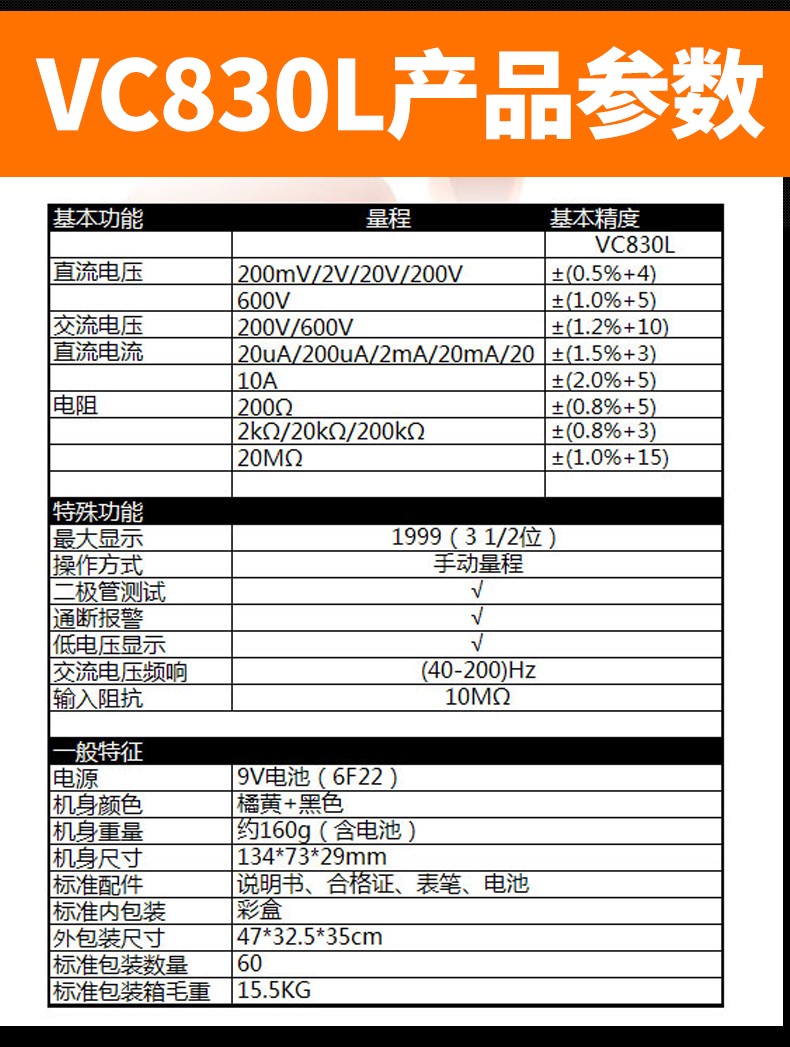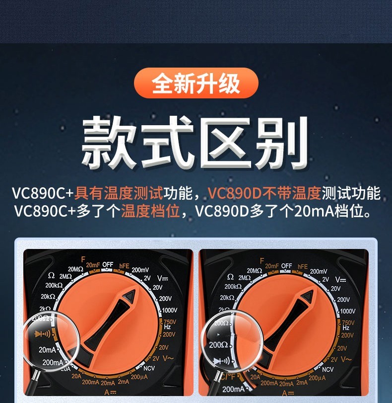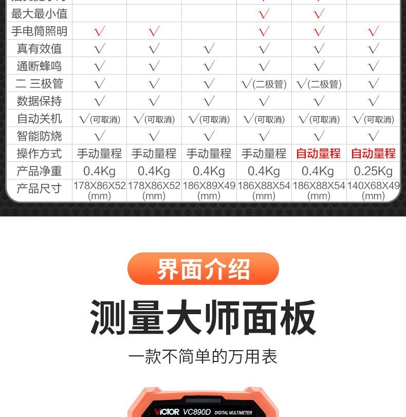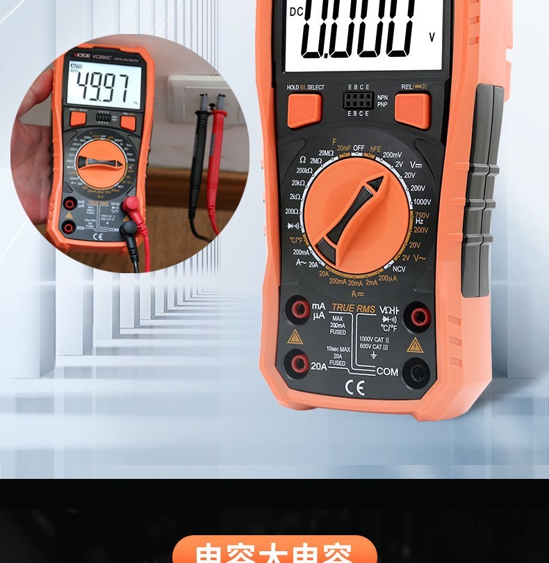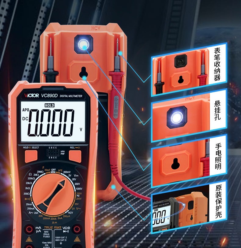 胜利仪器(VICTOR)数字高精度万用表万能表数显式万用表 VC890D (电容功能)