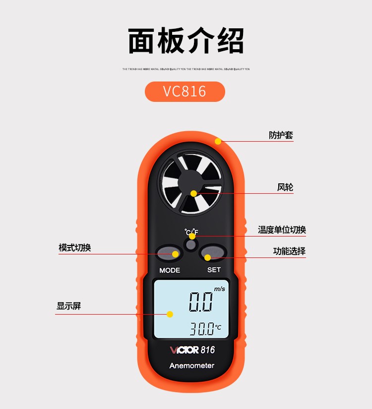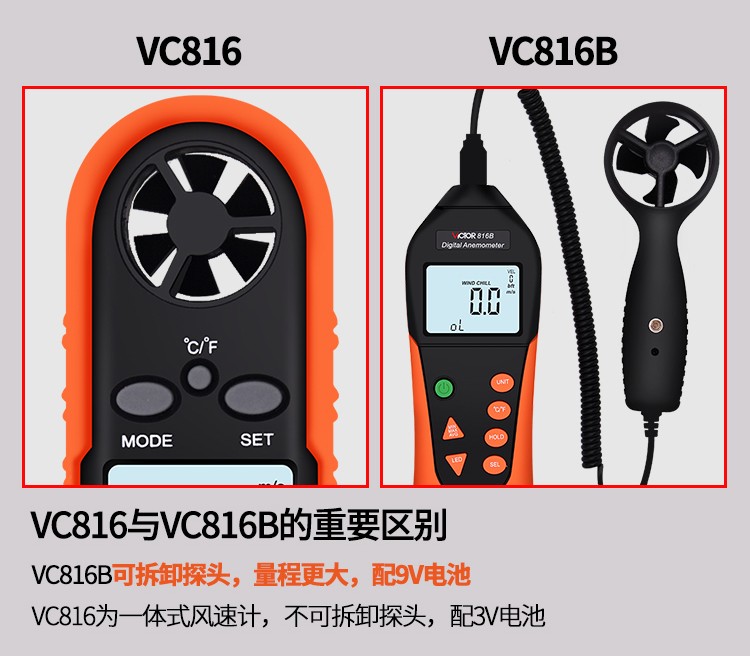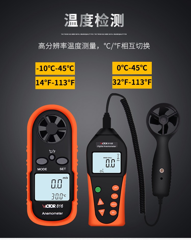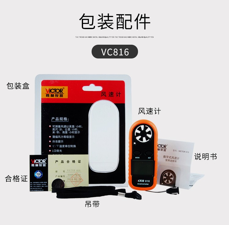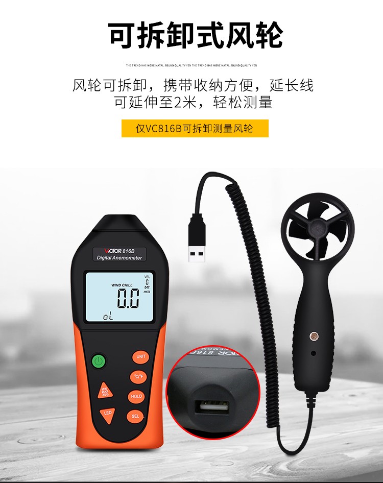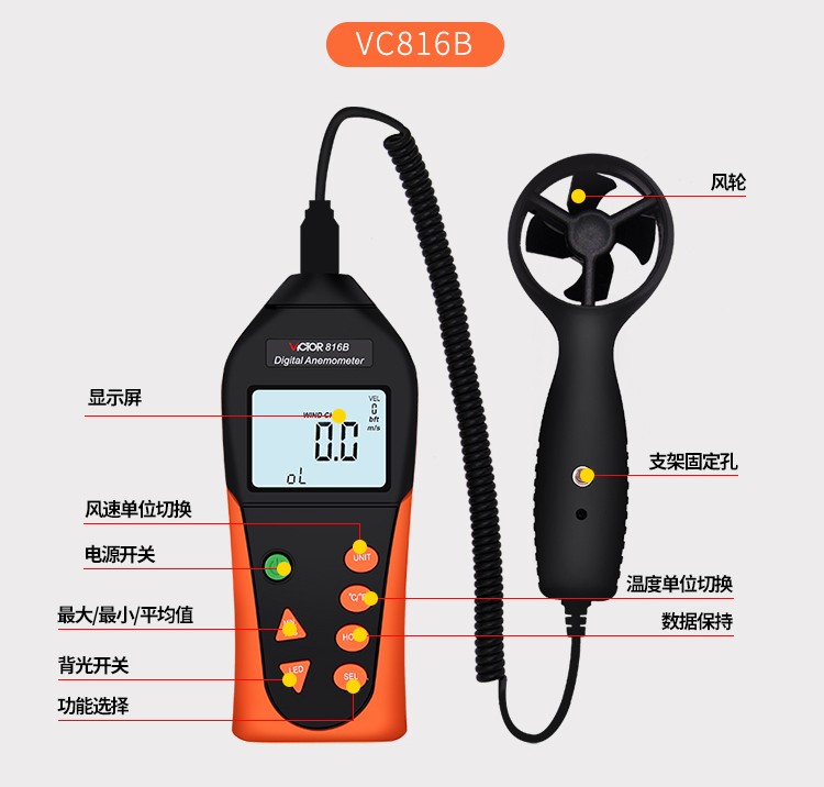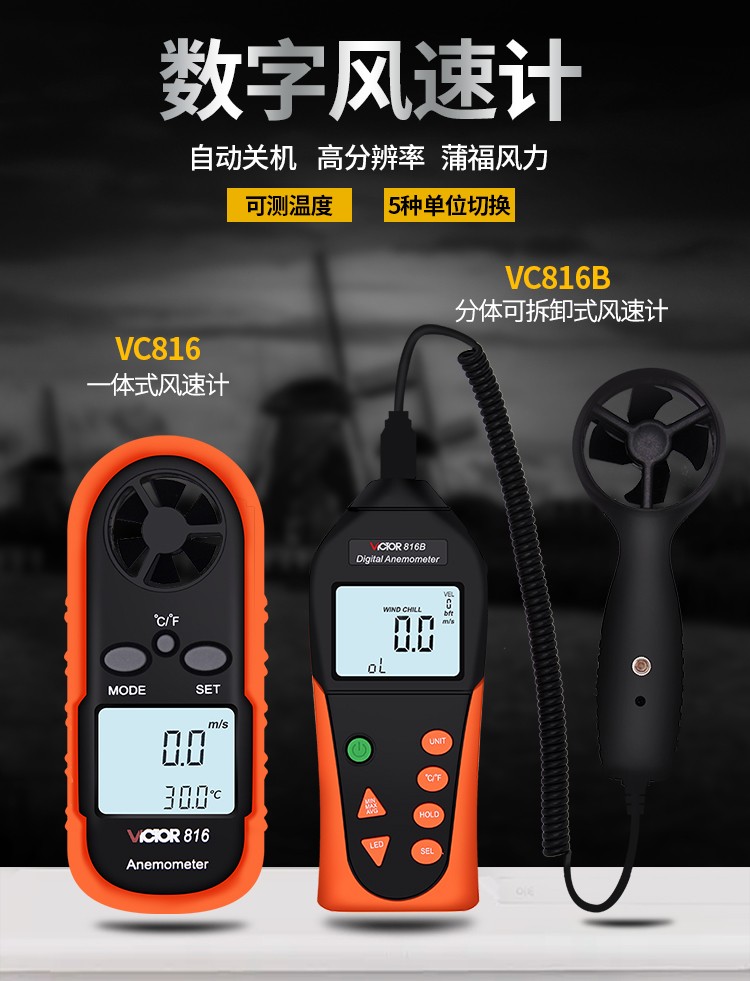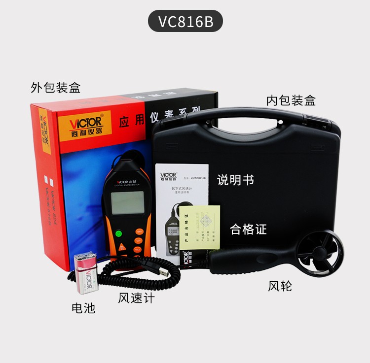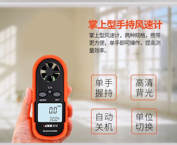 胜利仪器(VICTOR) VC816 袖珍数字风速仪风温计