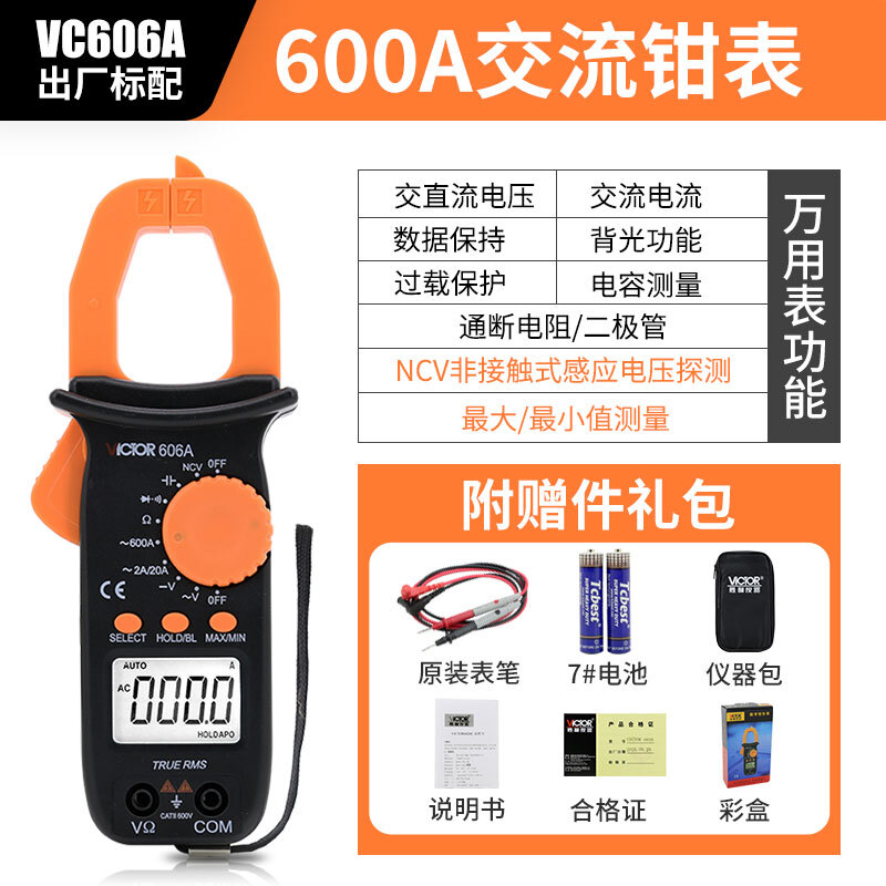 胜利仪器(VICTOR)钳形万用表数字电流钳表电工电子多用钳表万能钳表 交流600A VC606A