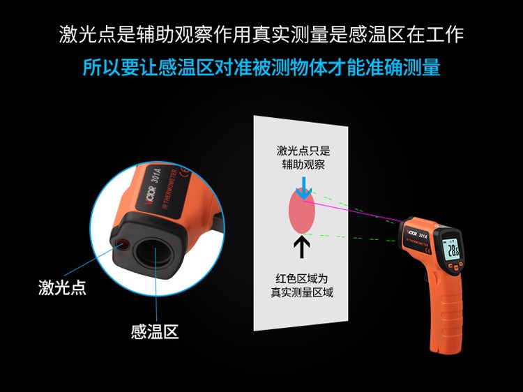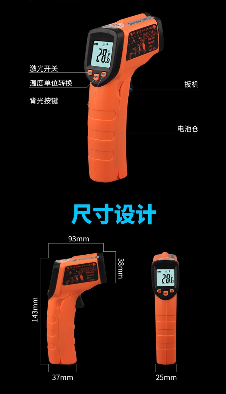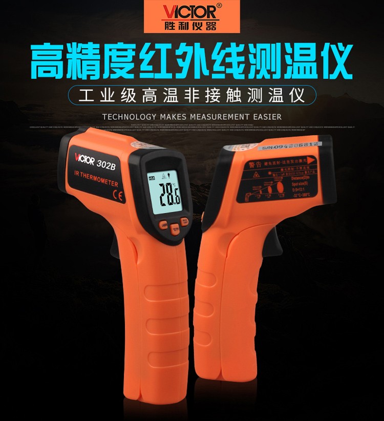 (不能测人)胜利仪器VICTOR彩屏型红外线测温仪 水温油温厨房工厂设备电子测温计非接触感应测温枪 VC304C彩屏款-50~880℃