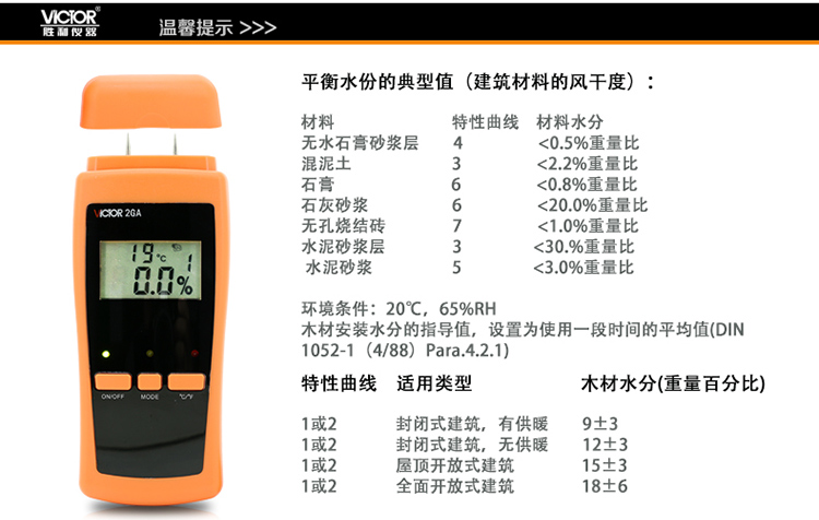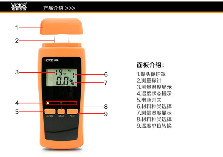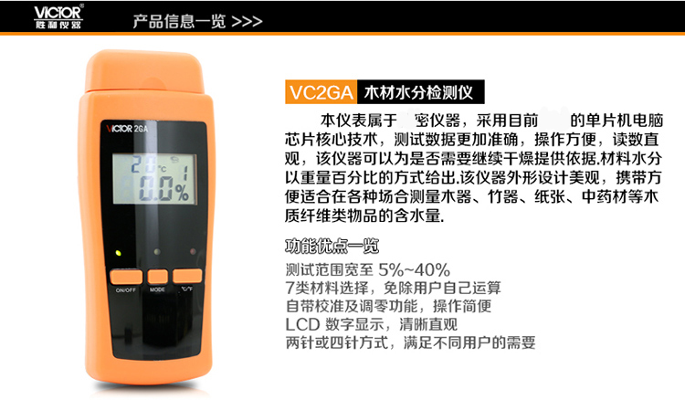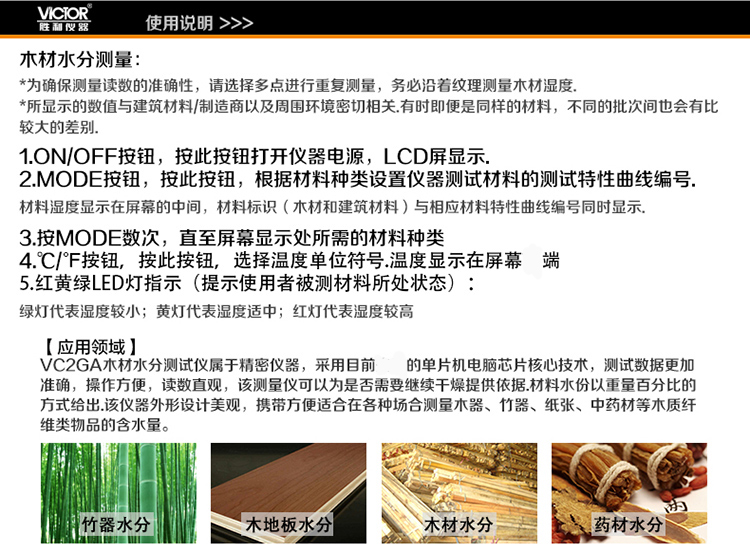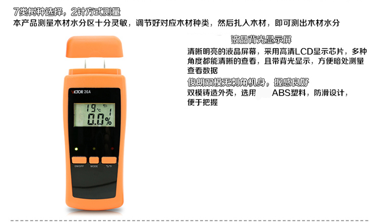 胜利仪器(VICTOR) VC2GA 木材水份测试仪 木板潮湿度测湿仪 测木材含水率水分仪
