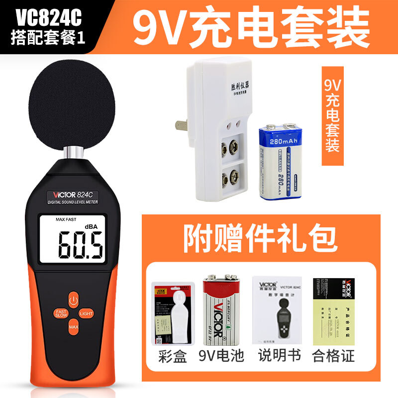 胜利仪器(VICTOR)VC824C 分贝计噪音测试仪声级低频噪音分贝计充电套装