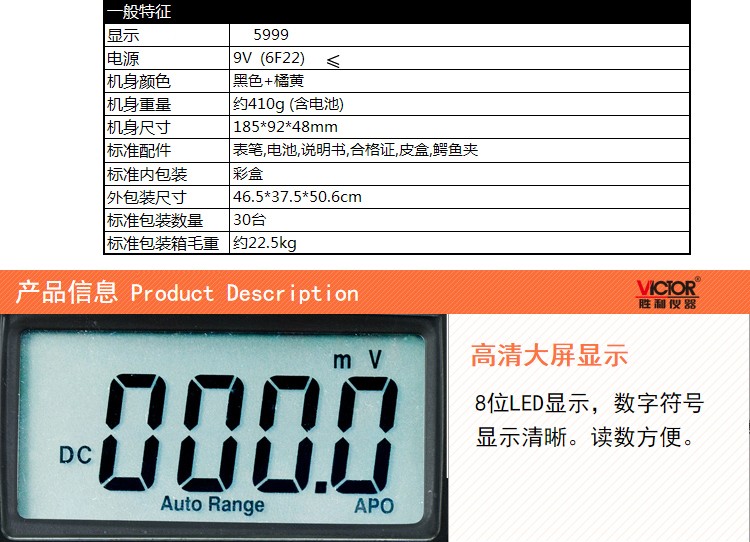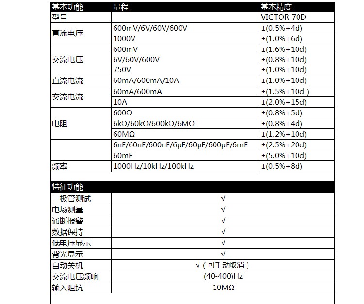 胜利仪器(VICTOR) VC70D 自动量程数字万用表 按键式 标配