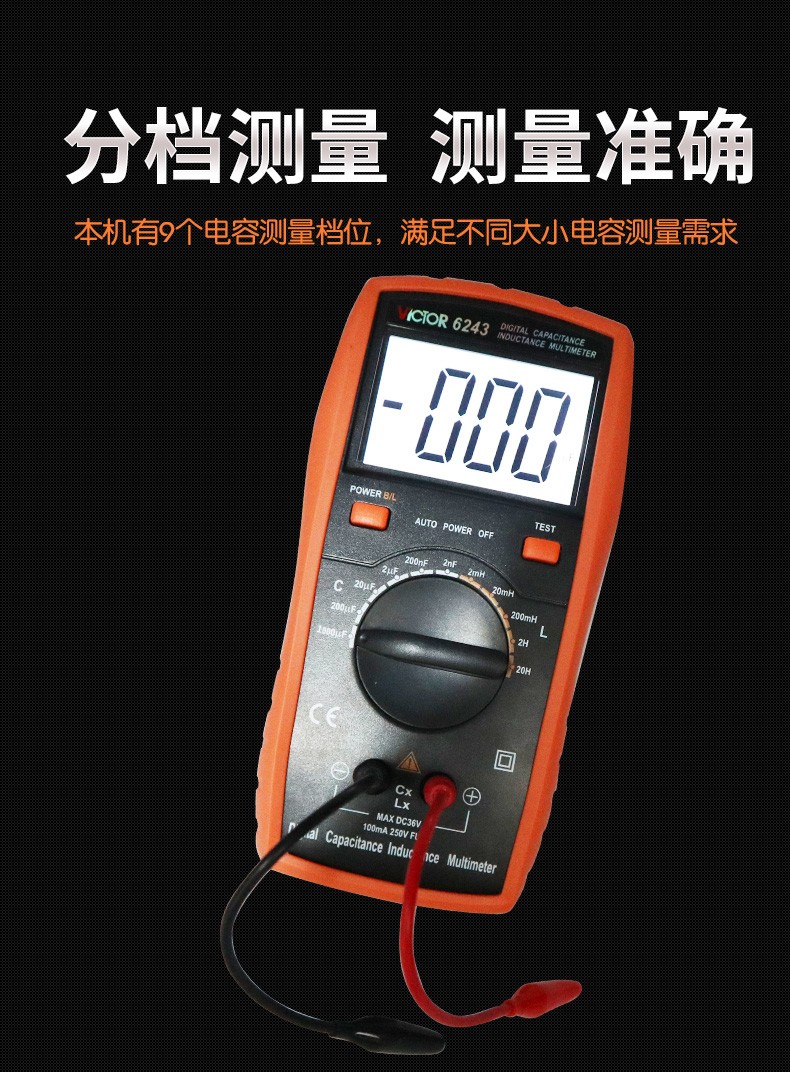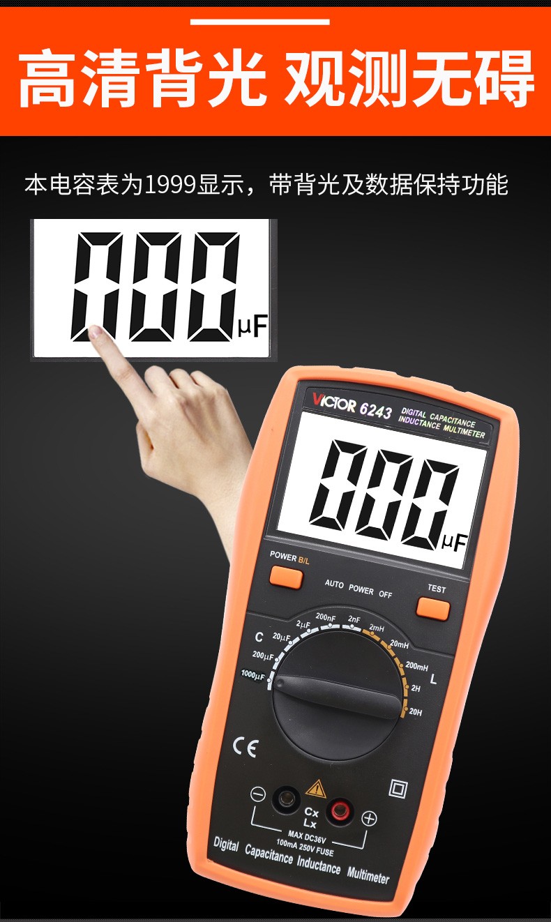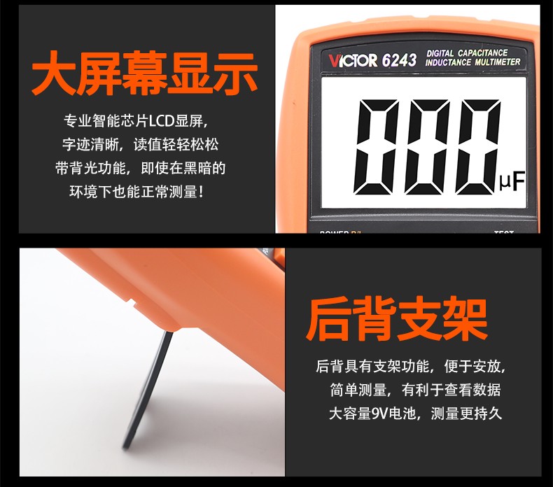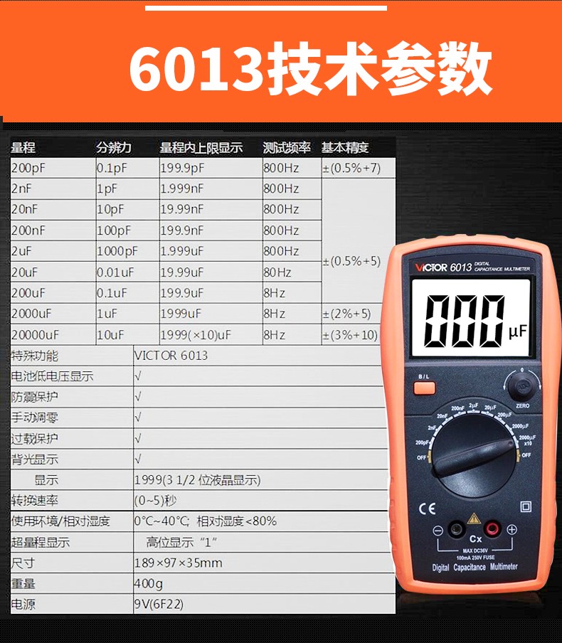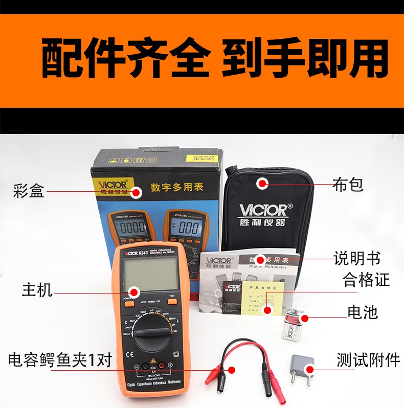 VICTOR胜利数字电容万用表VC6013/VC6243 高精度电感电容手持LCR测试仪 VC6013 标配+充电套装