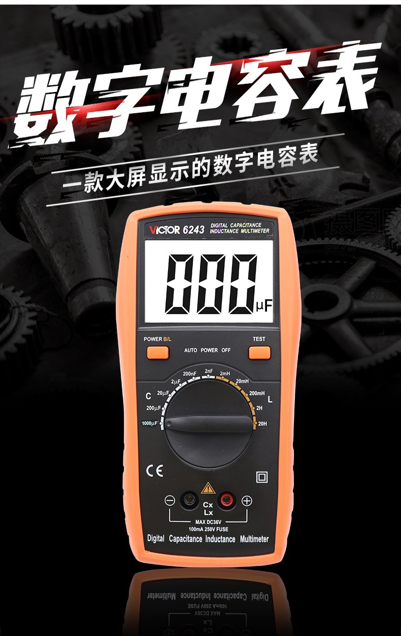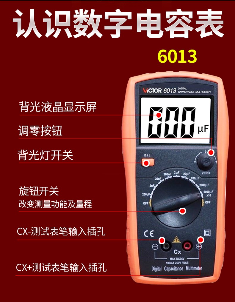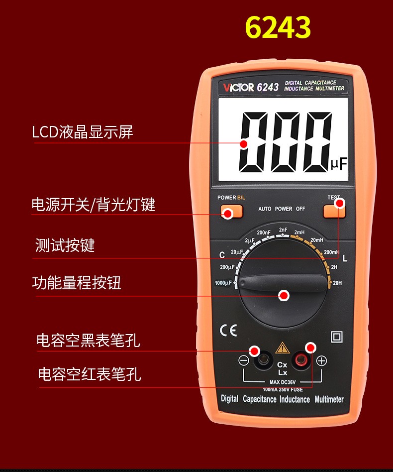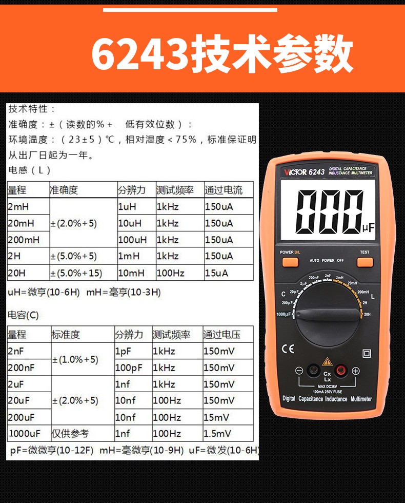 VICTOR胜利数字电容万用表VC6013/VC6243 高精度电感电容手持LCR测试仪 VC6013 标配+充电套装