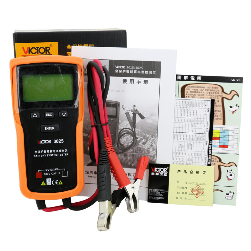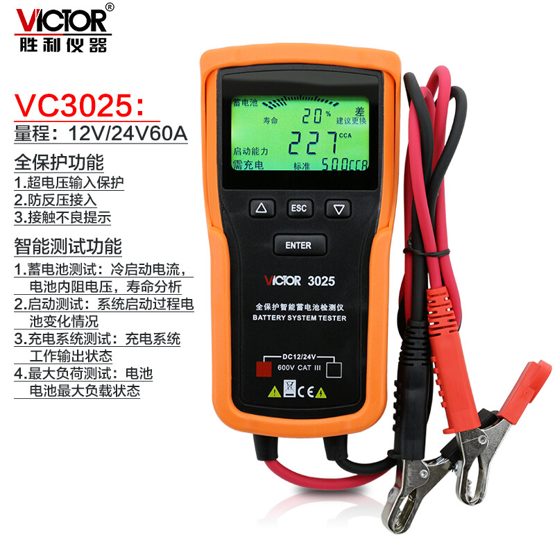 胜利仪器(VICTOR)蓄电池检测仪汽车电池检测器12/24V蓄电池电瓶检测仪仪VC3025