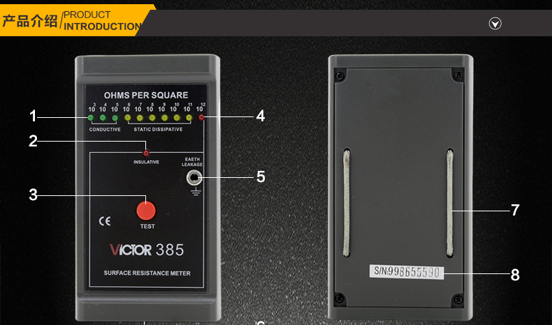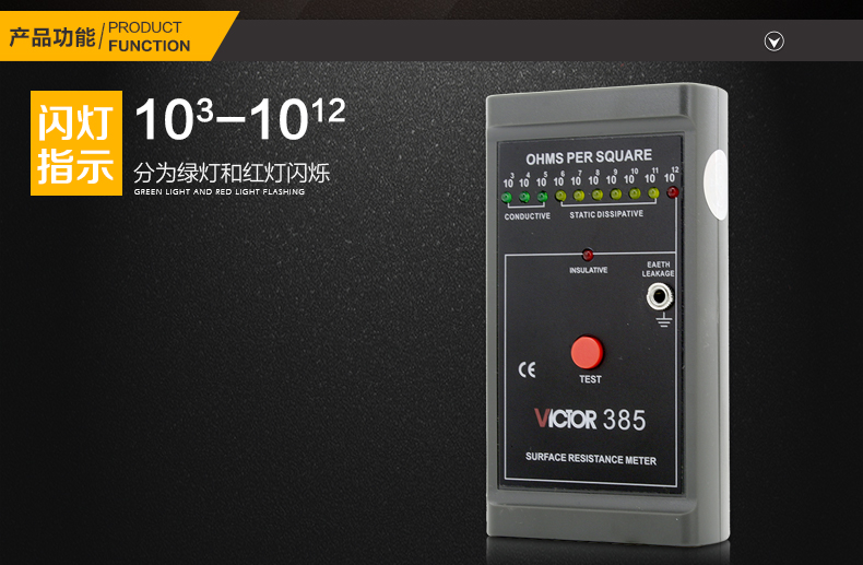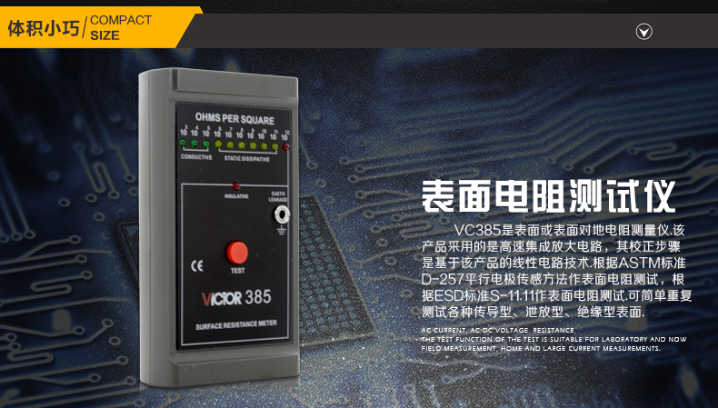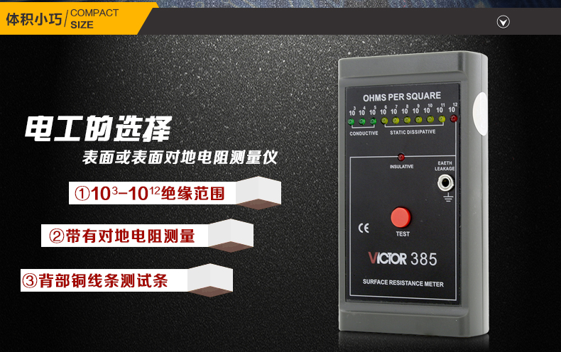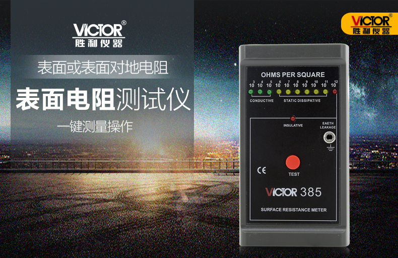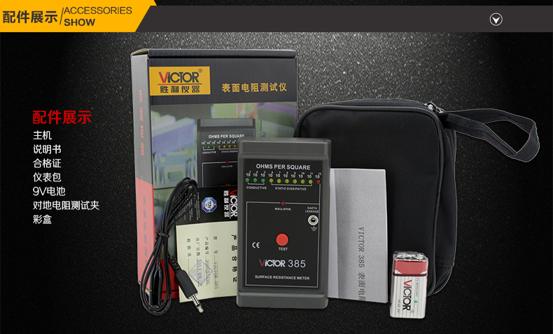 胜利仪器(VICTOR)VC385防静电测试仪低电阻表面电阻测试仪仪器 表面电阻测试仪 VC385 标配 (普通电池)