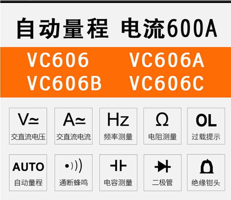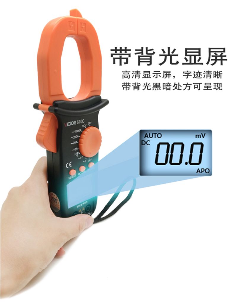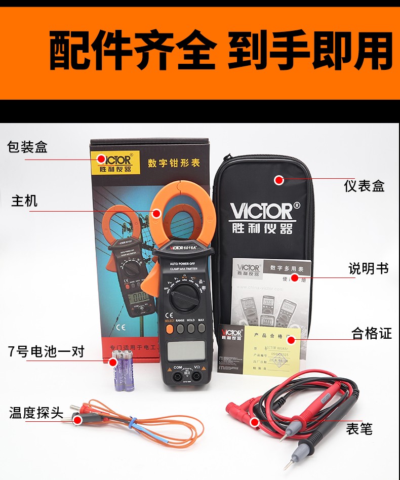 胜利仪器(VICTOR)高精度数字钳形表 全自动万用表 交直流电流钳表 钳式电流表 VC610B标配