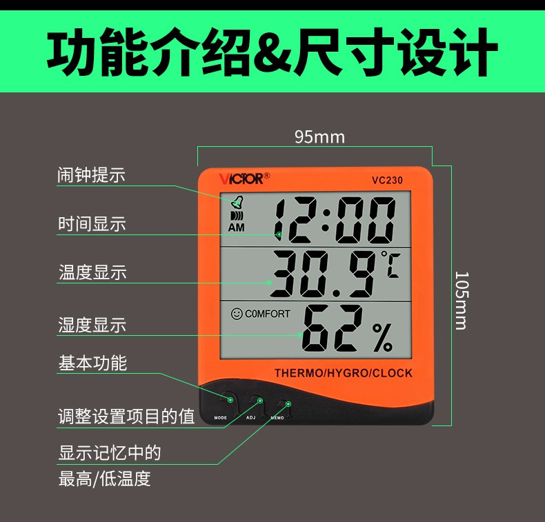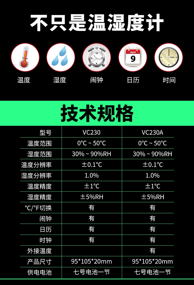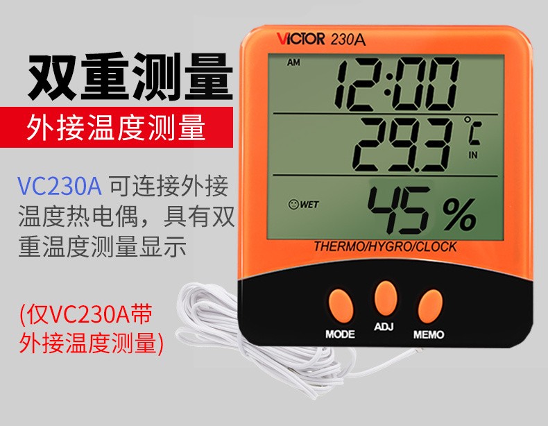 胜利仪器(VICTOR)VC230A/VC231家用温湿度表数字温湿度计温湿度测试仪 VC231 专业级