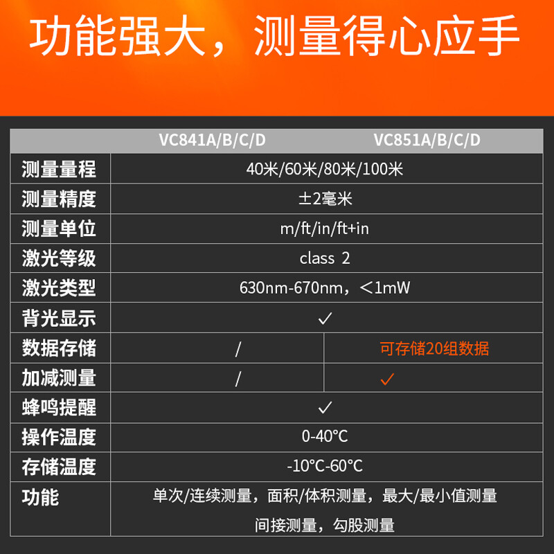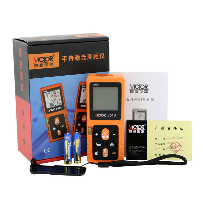 胜利仪器(VICTOR)激光测距仪手持激光红外线电子尺子量房仪器0.2-60米VC851B充电电池套装