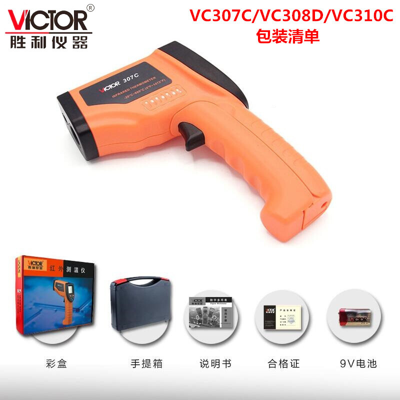 (不能测人)胜利仪器VICTOR彩屏型红外线测温仪 水温油温厨房工厂设备电子测温计非接触感应测温枪 VC307C 测温-20~800℃