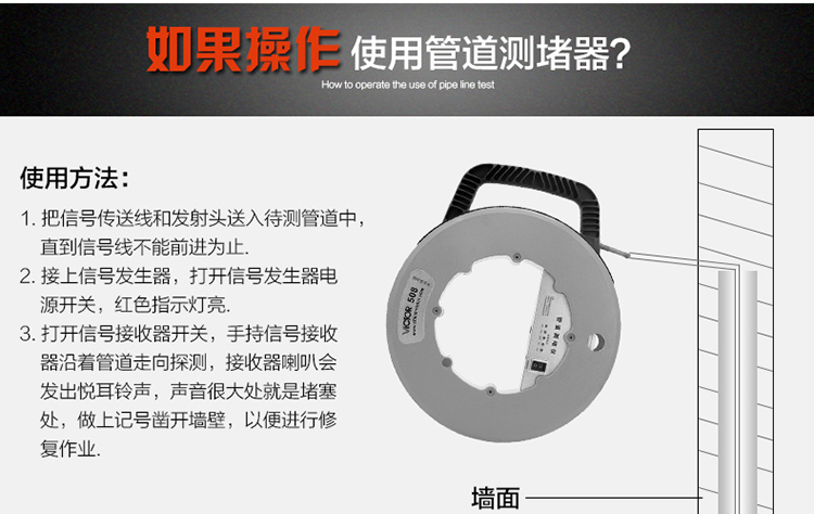 胜利仪器(VICTOR) VC508A 无线电管道测堵器 测堵仪 测塑管 穿线管堵塞