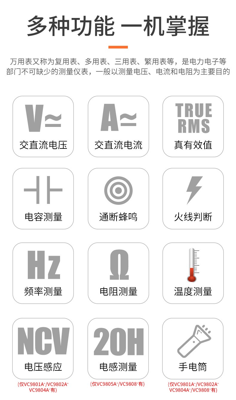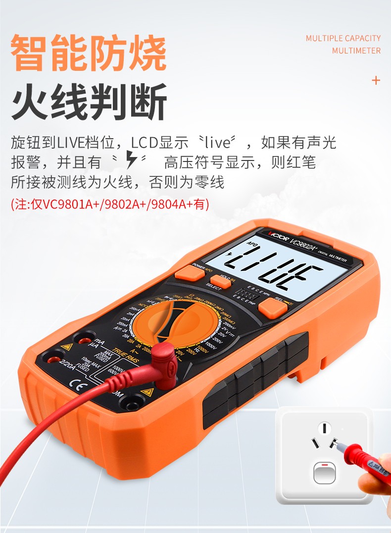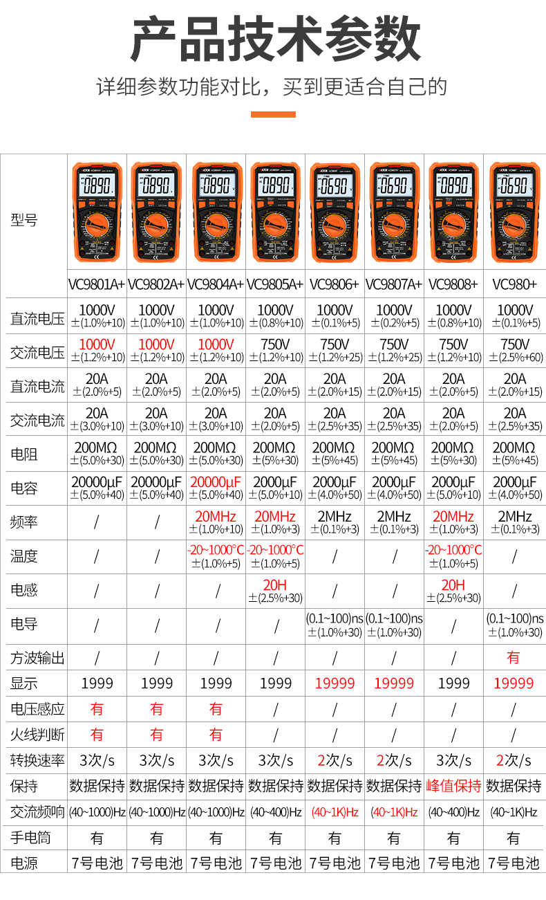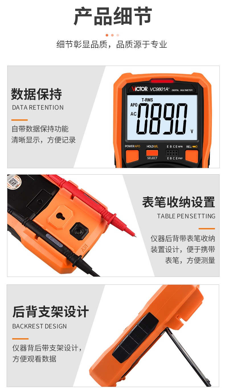 胜利仪器(VICTOR)数字高精度万用表电容表防烧电工数字万能表多用表 VC980+标配(4节7号电池)