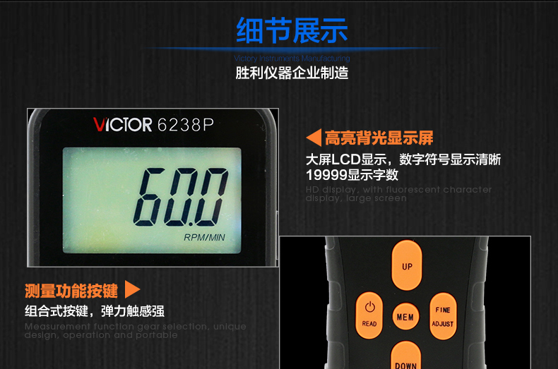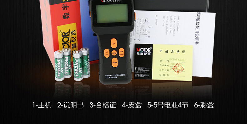 胜利仪器(VICTOR) DM6238P 数字频闪仪闪频测速仪转速表测速仪 标配+充电套2充4电