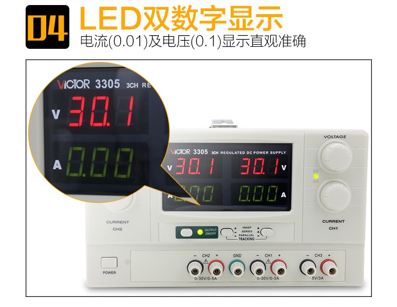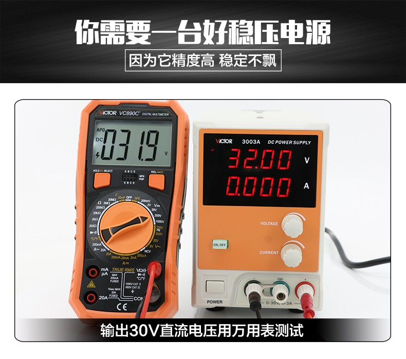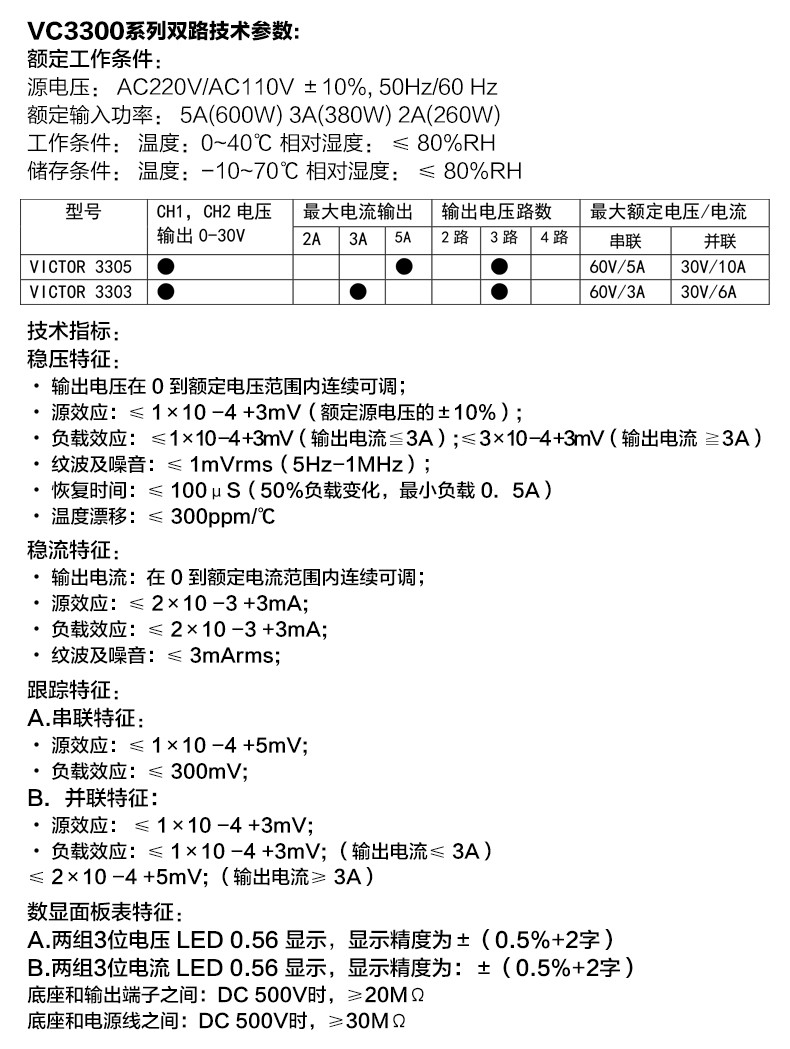 胜利仪器(VICTOR) 3位数显线性直流稳压电源 VC3003【30V/3A 单路】
