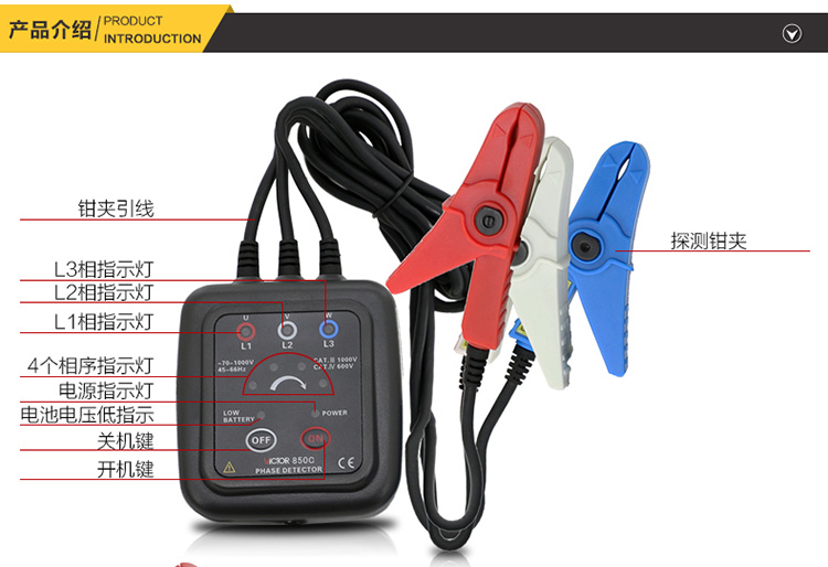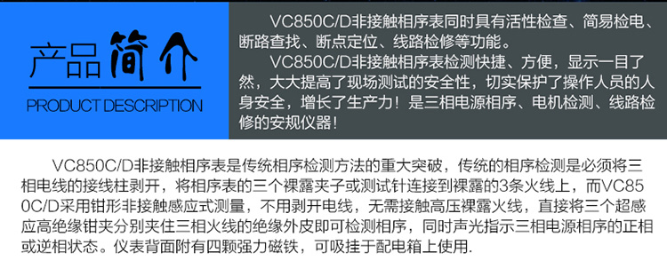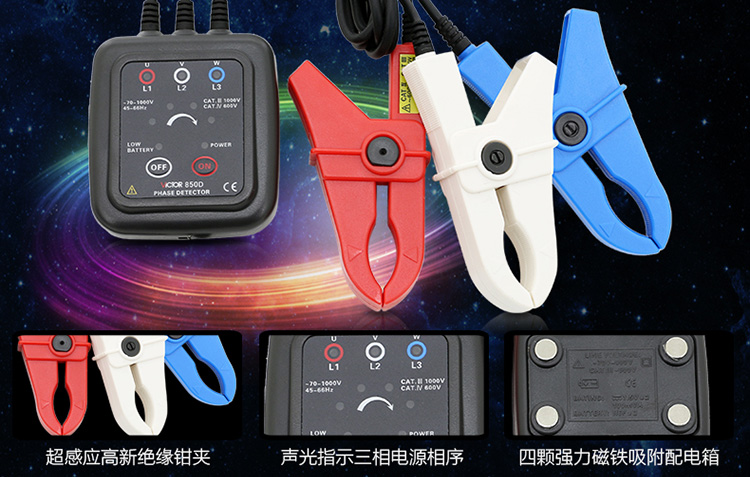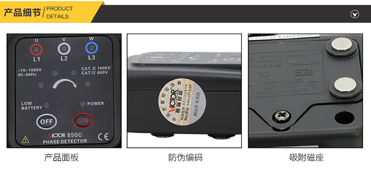 胜利仪器(VICTOR) VC850C 三相交流电相位计相序表相序测试仪相位仪相位检测仪 标配+5#充电套