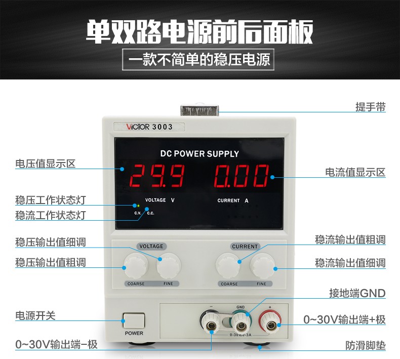 胜利仪器(VICTOR) 3位数显线性直流稳压电源 VC3005【30V/5A 单路】