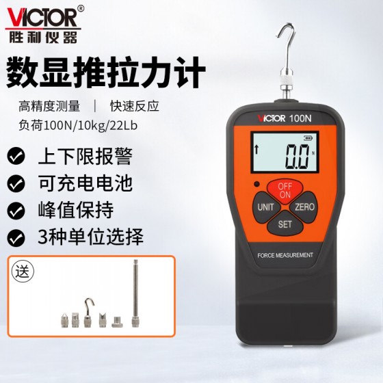 胜利仪器(VICTOR)数显推拉力计 拉压测力计 测力计 拉力测试仪 VC100N 10KG