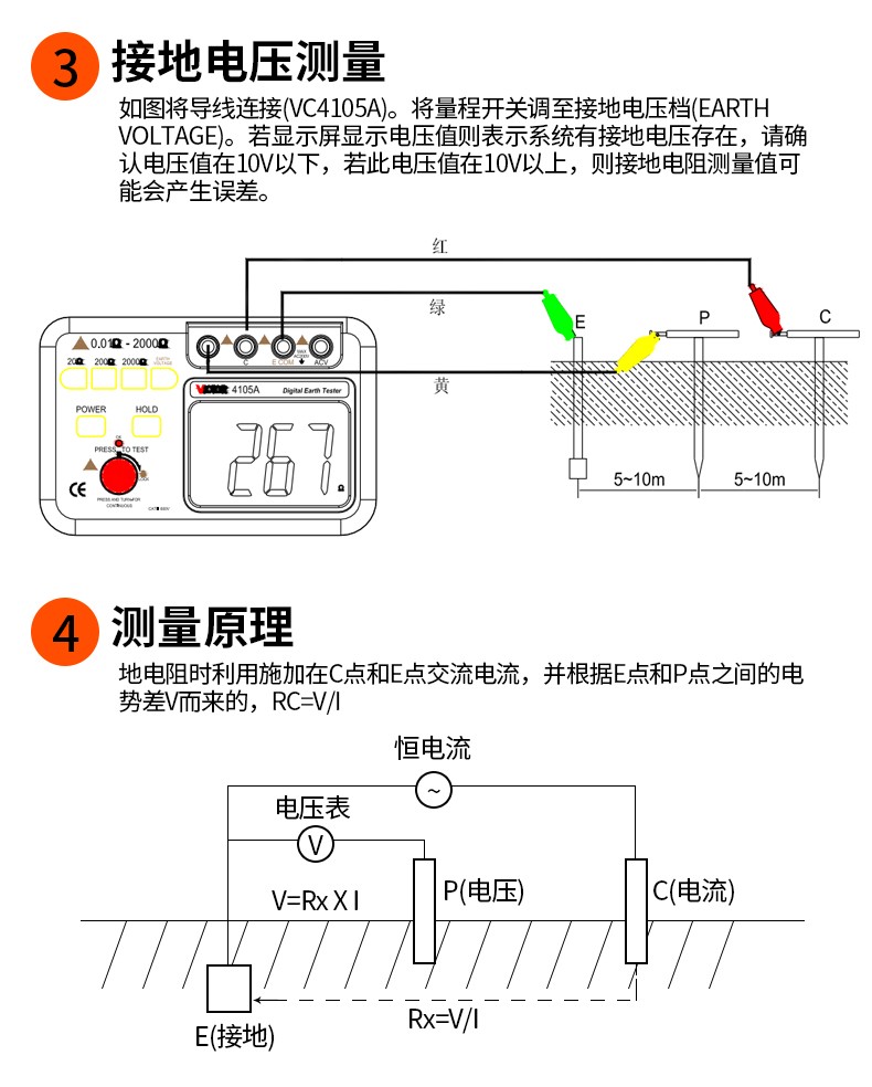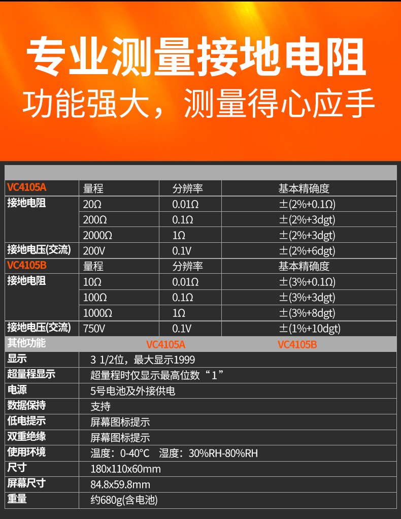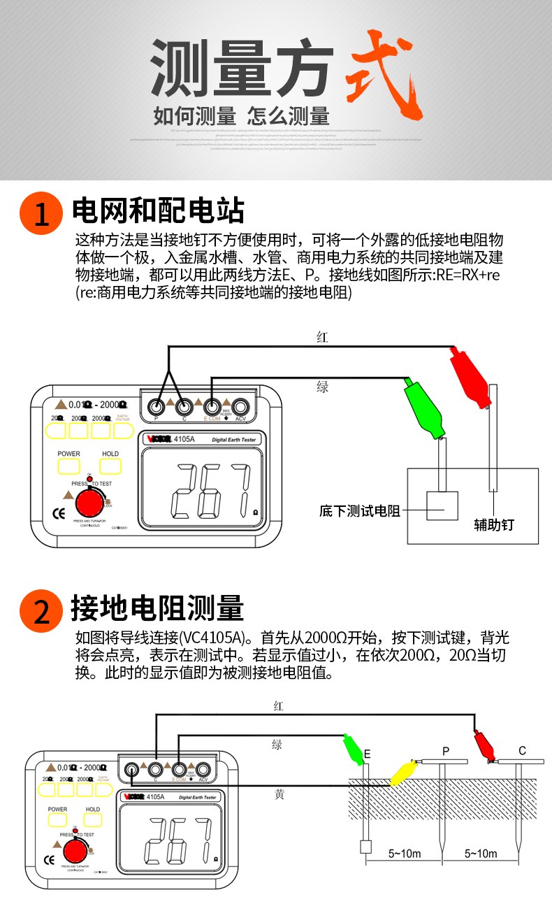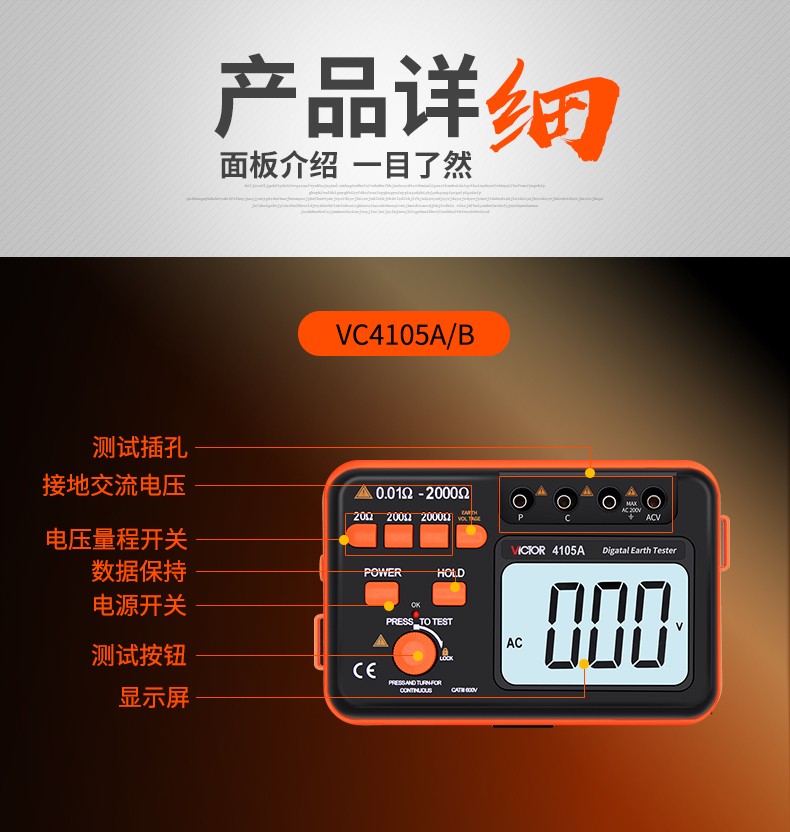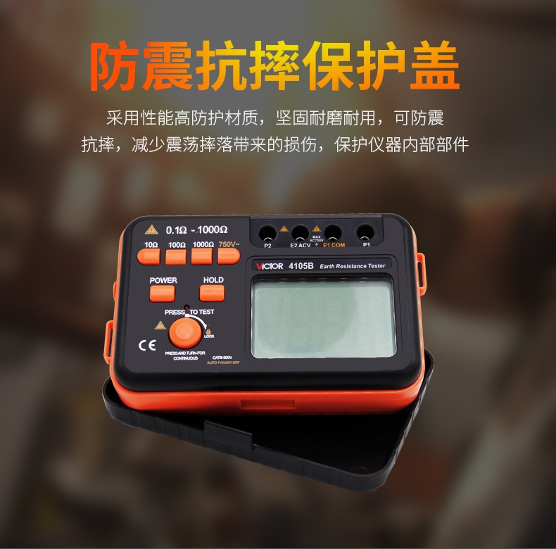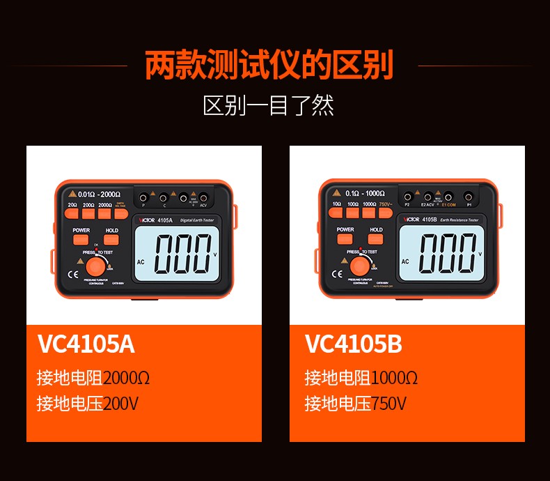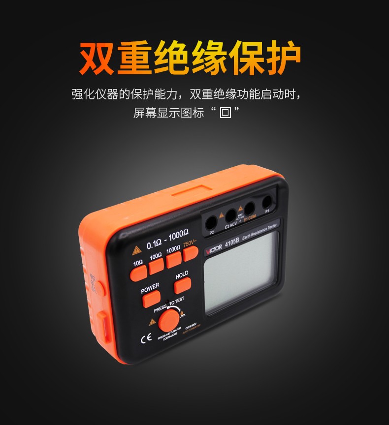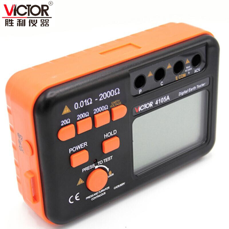 胜利仪器(VICTOR)VC4105A/4105B数字高精度接地电阻测试仪数字接地摇表防雷测试仪表 VC4105A (AC200V/2000Ω)