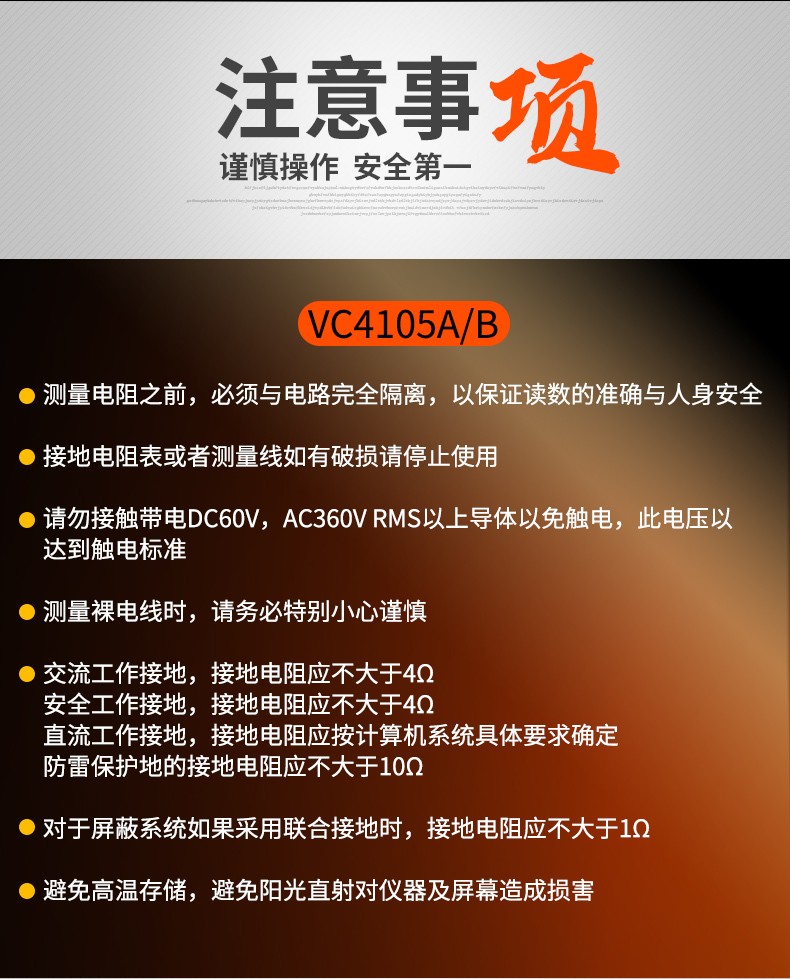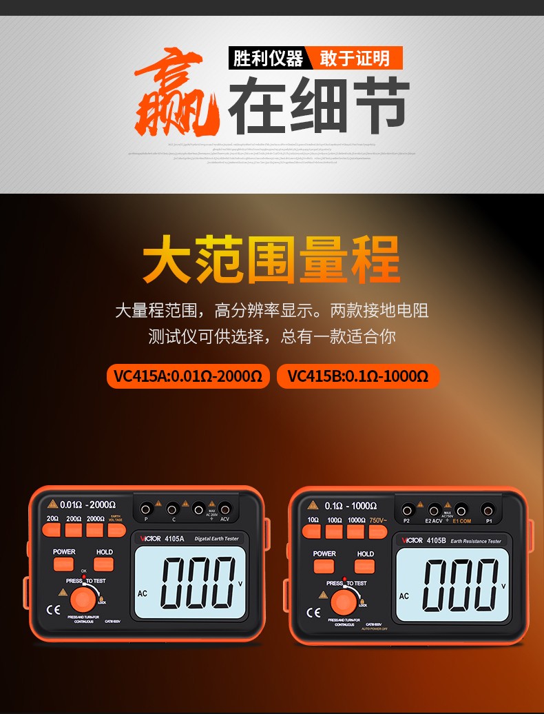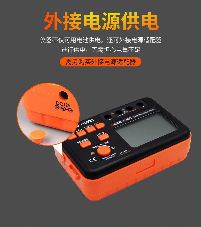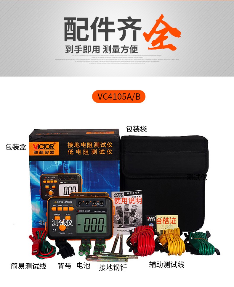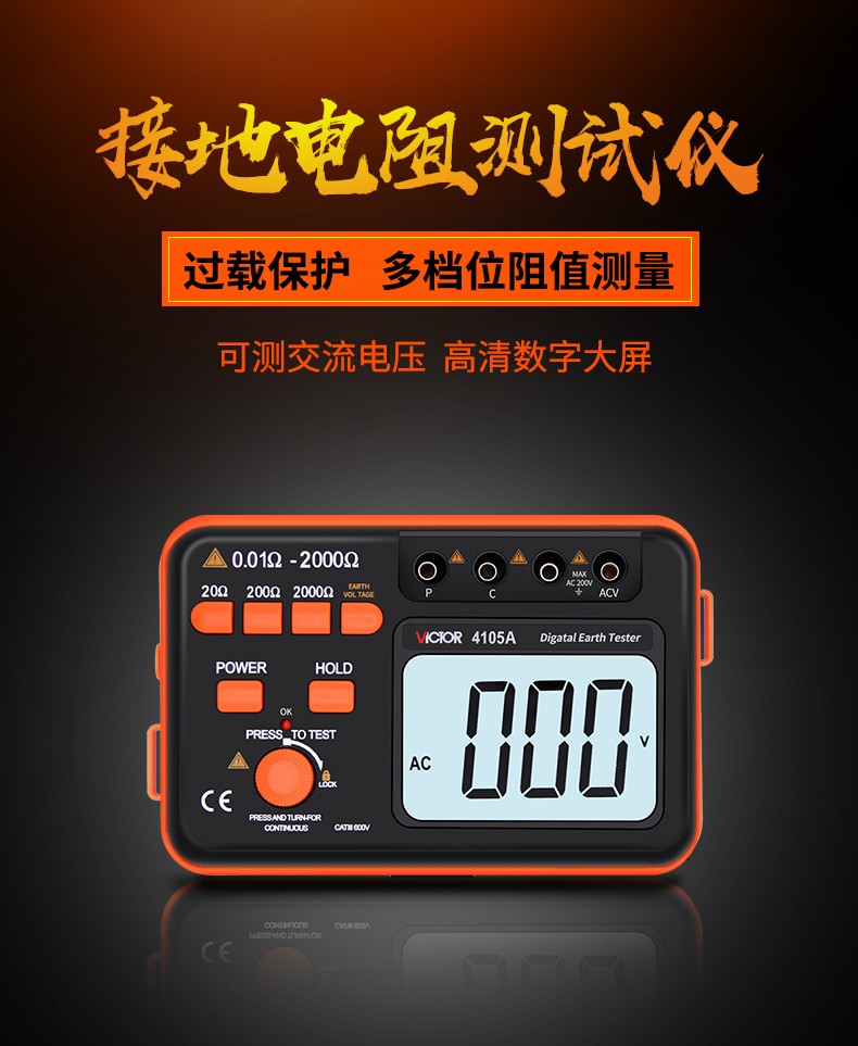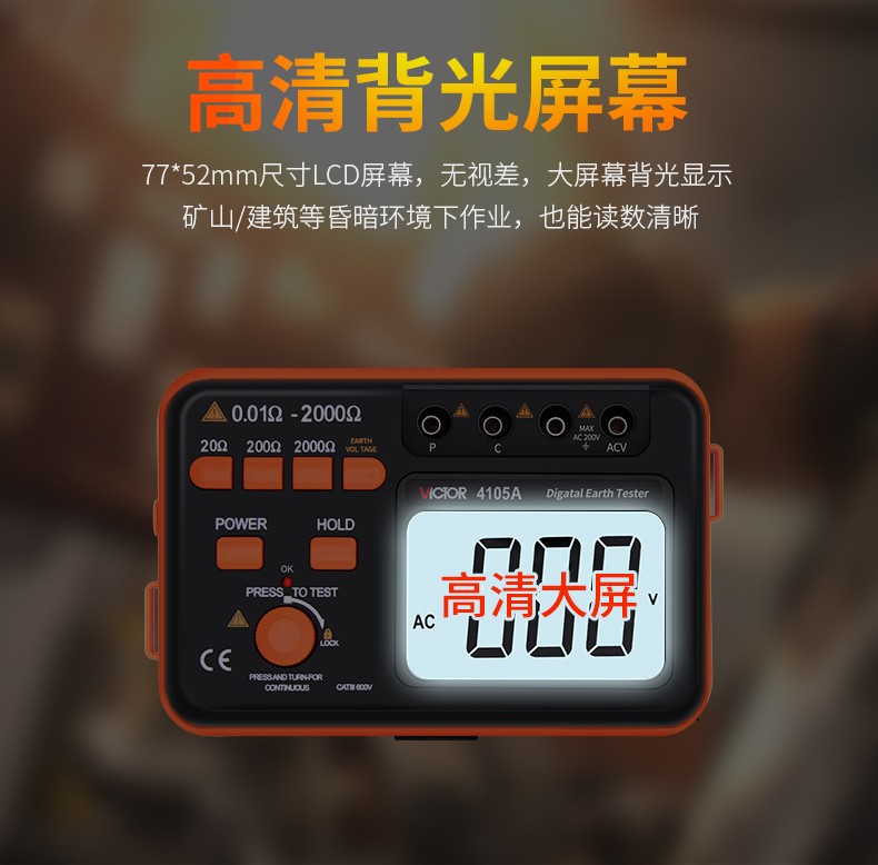 胜利仪器(VICTOR)VC4105A/4105B数字高精度接地电阻测试仪数字接地摇表防雷测试仪表 VC4105B (AC750V/1000Ω)