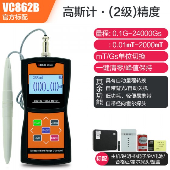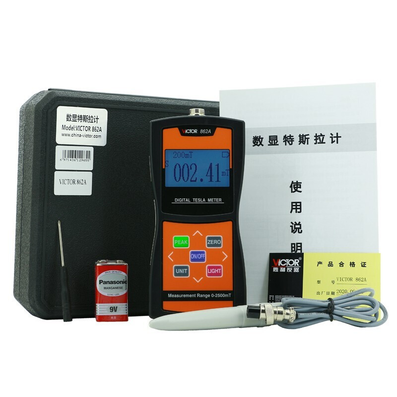 胜利仪器(VICTOR)数显高斯计磁场测量仪器高精度特斯拉计磁强计测磁仪 2级精度VC862B