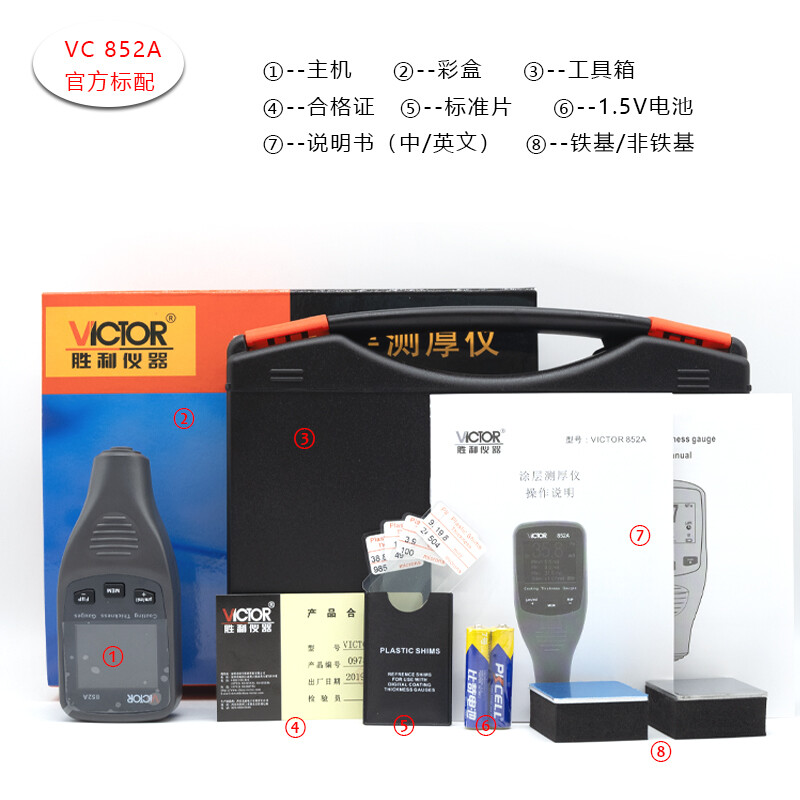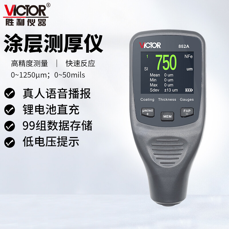 胜利仪器(VICTOR)涂层测厚仪 油漆 铁基 铝基两用 漆膜仪 厚度测量仪 VC852A