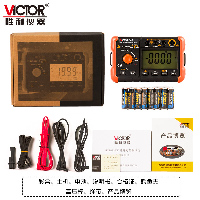 胜利仪器(VICTOR)数字兆欧表 绝缘电阻测试仪 50/100/250/500/1000/1500/2000/2500V高压摇表 VC60F