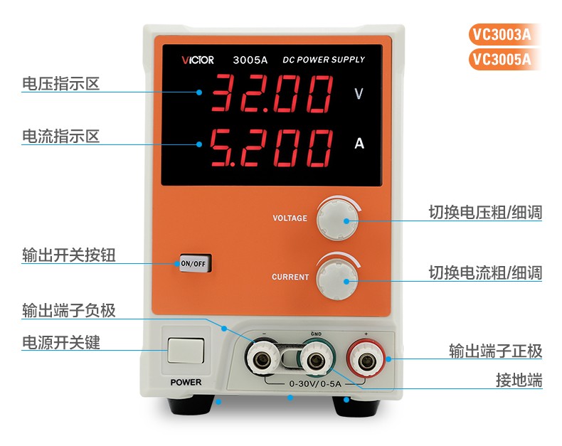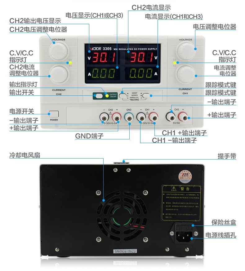 胜利仪器(VICTOR) 3位数显线性直流稳压电源 VC3305【30V/5A 双路】