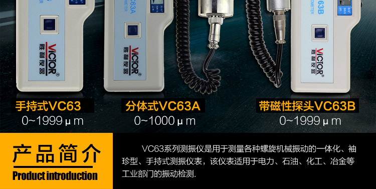 胜利仪器(VICTOR)数字测振仪 测震仪 分体式 尖头 振动测试仪 VC63A