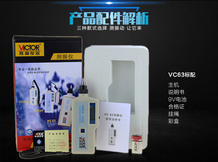 胜利仪器(VICTOR) VC63A 分体式测振仪测震表振动分析仪 便携测震笔