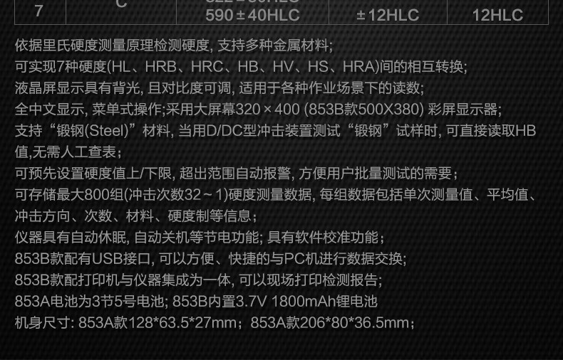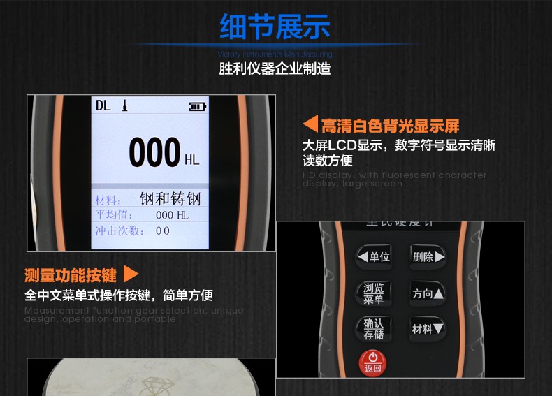 胜利仪器(VICTOR) 里氏硬度计 金属铁钢硬度计 便携式硬度测试仪 VC853A
