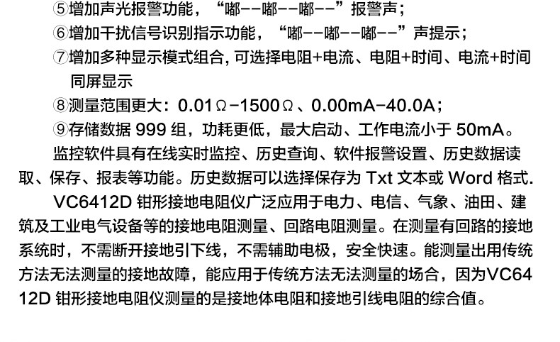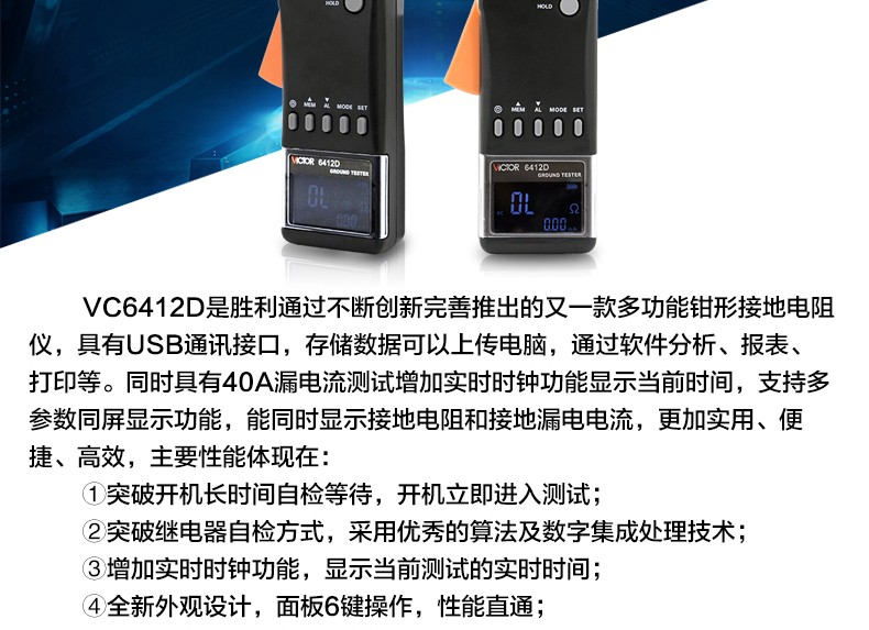 胜利仪器(VICTOR) VC6412+ 钳形接地电阻测试仪安规避雷针检测仪