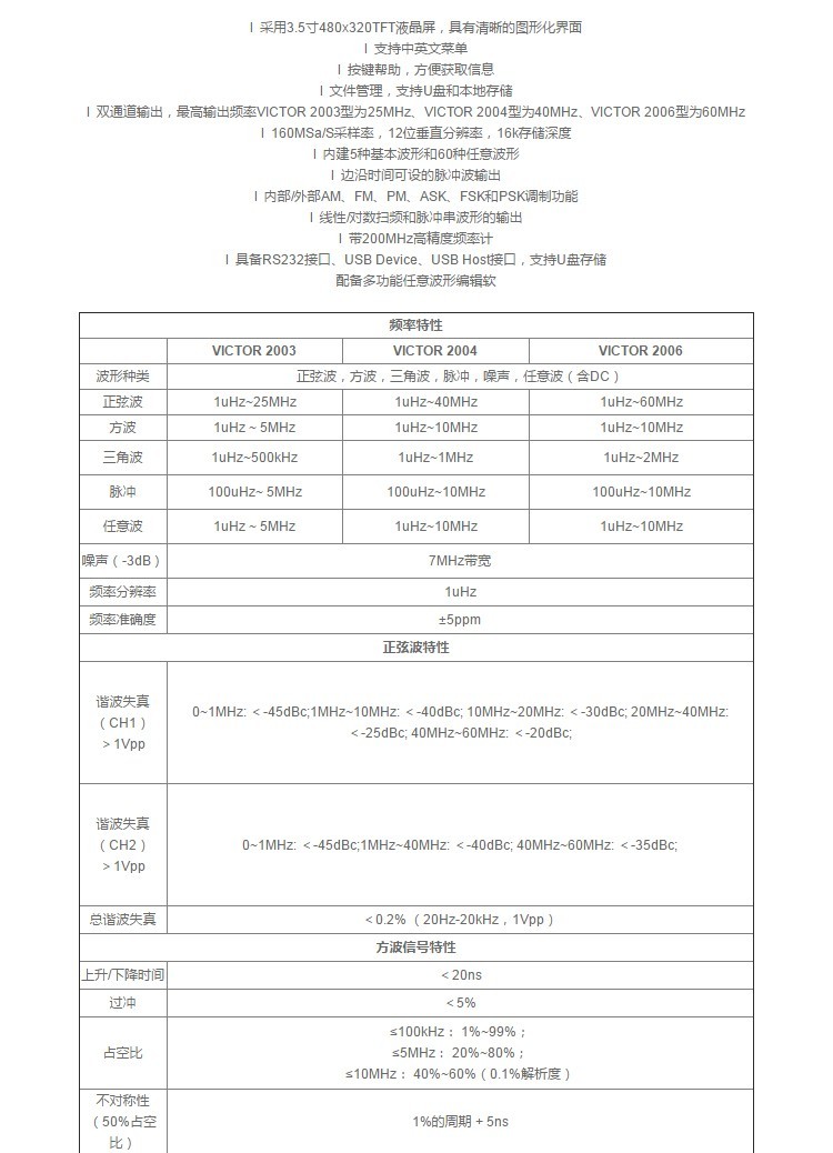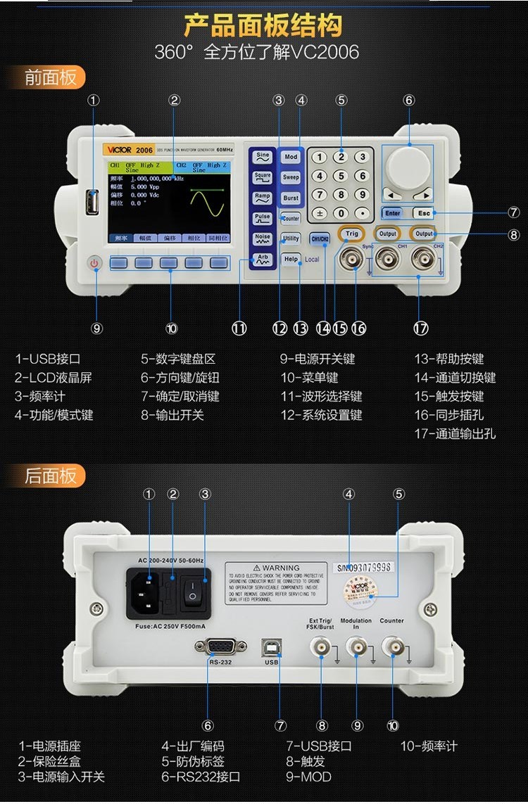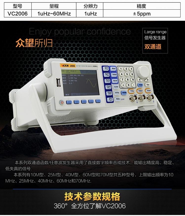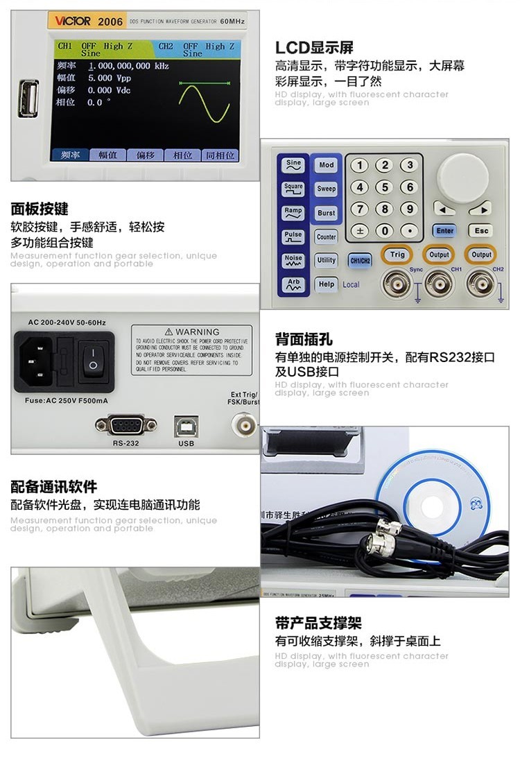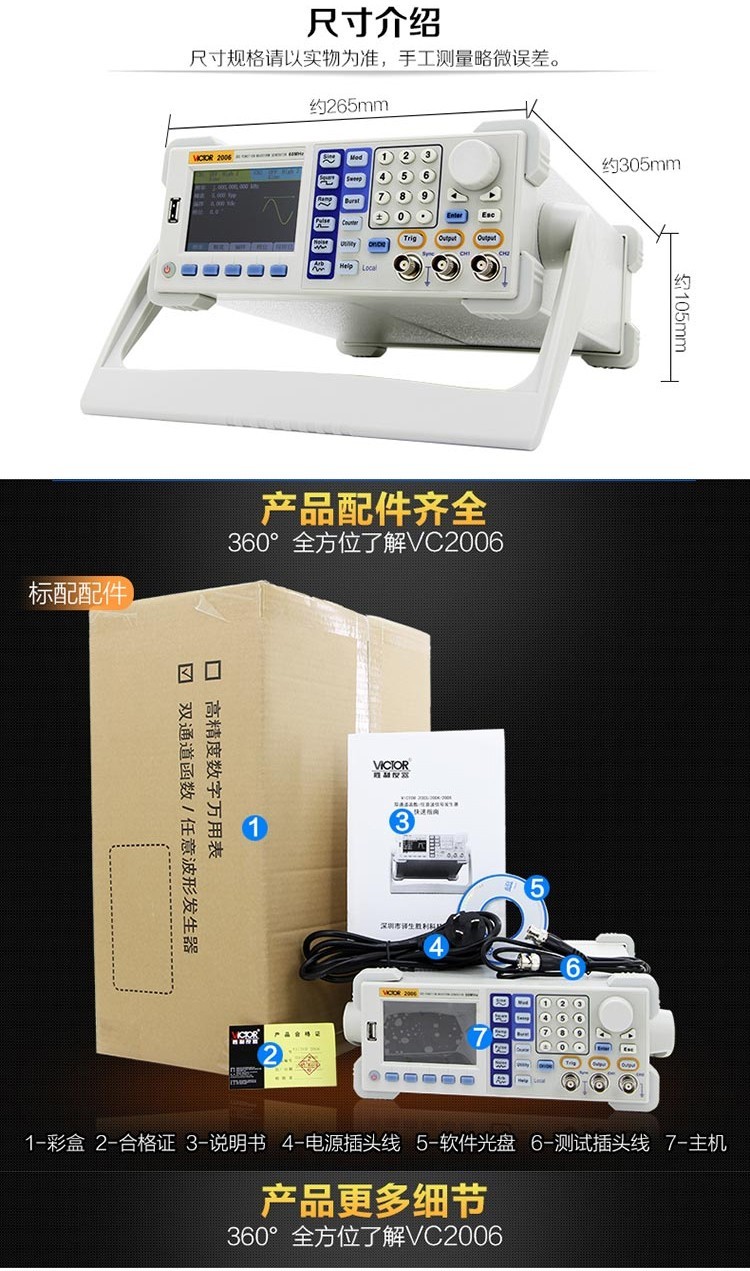 胜利仪器(VICTOR) 双通道DDS函数信号发生器 任意波形发生器 VC2004 官方标配