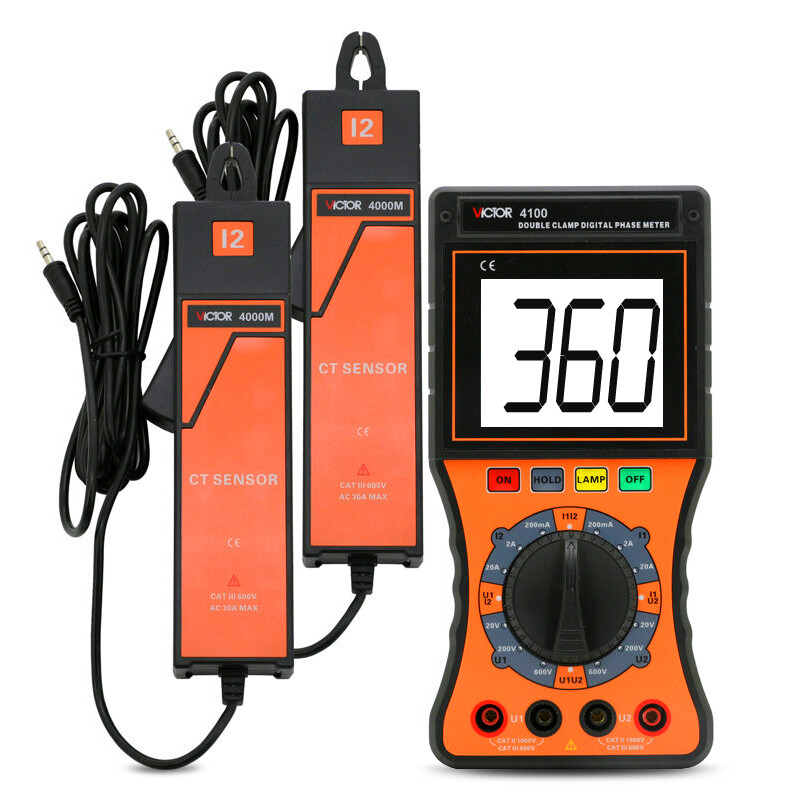 胜利仪器(VICTOR)VC4100 双钳数字相位伏安表 三相相序检测仪 数字相位表